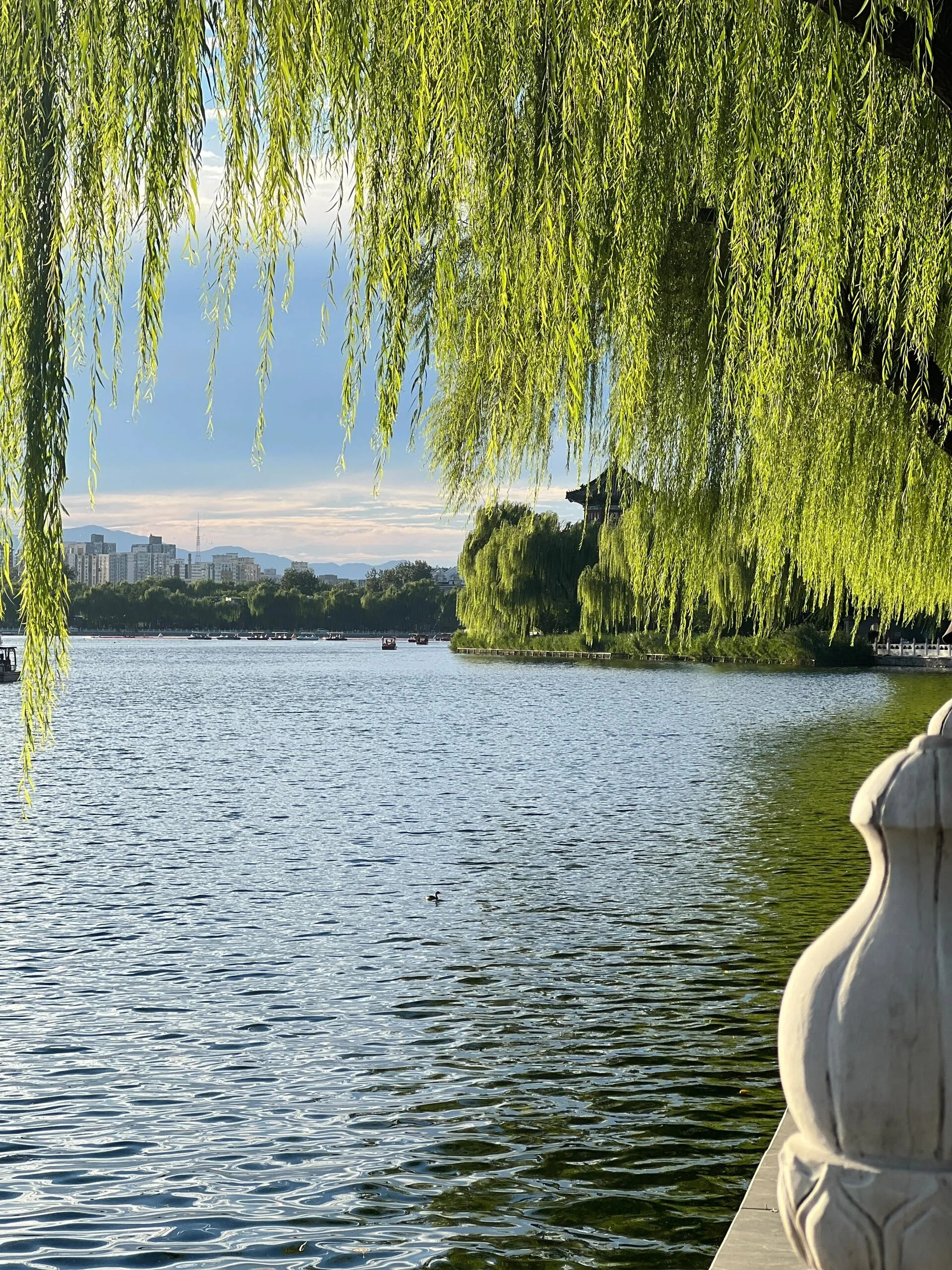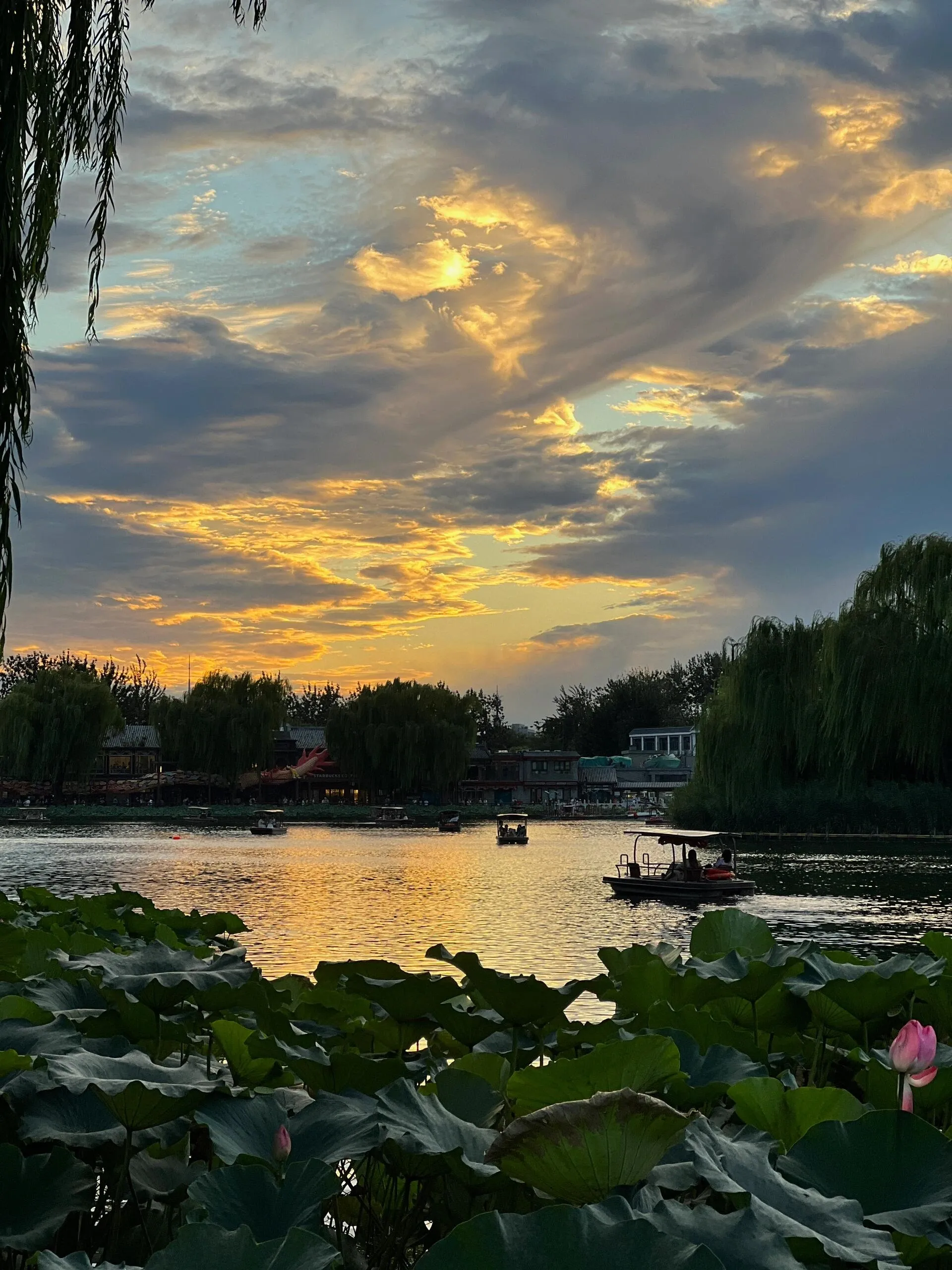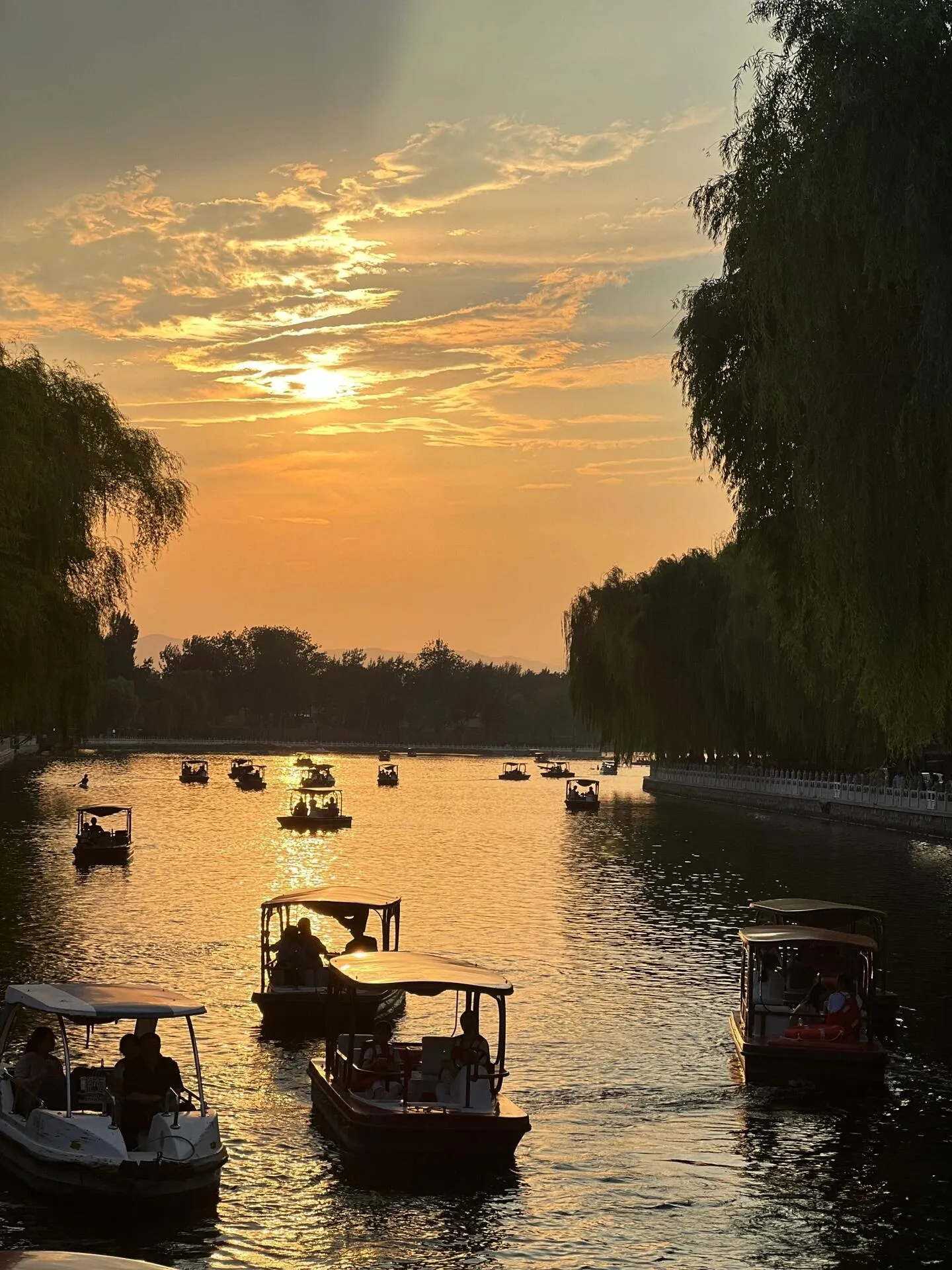 什刹海是欣赏晚霞的绝佳地点 ,其中银锭桥是最佳观赏点。但由于桥上人多且停留不太安全,建议沿着东岸往南或往北走,同样能欣赏到美丽的晚霞。