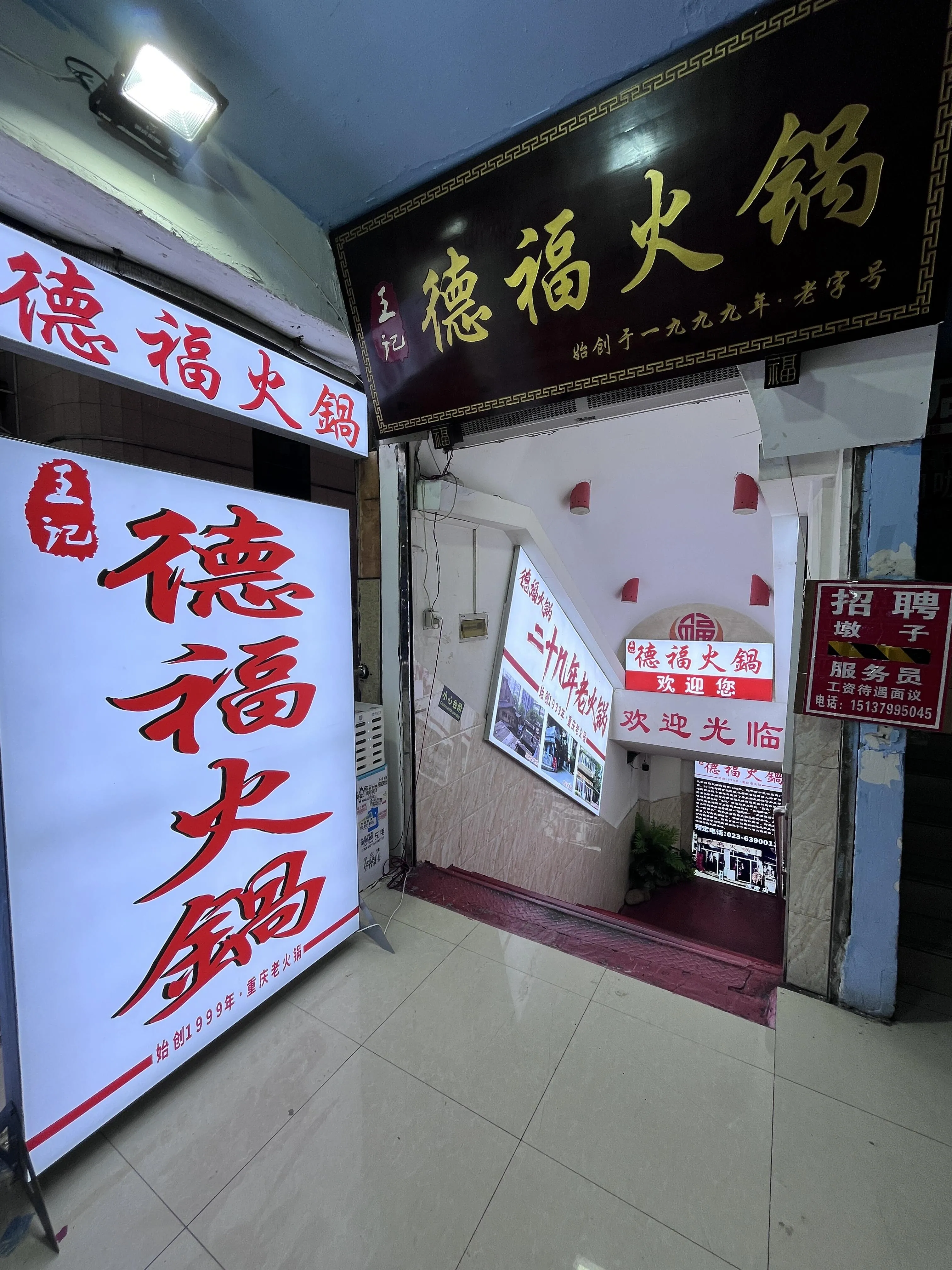 爬累了,下山再去吃个地道火锅。推荐 王记德福火锅(解放碑店) ,这是一家开了很多年的老店,就在居民楼里。味道很正宗,菜品丰富食材新鲜,位置也很好找,距离商圈很近。