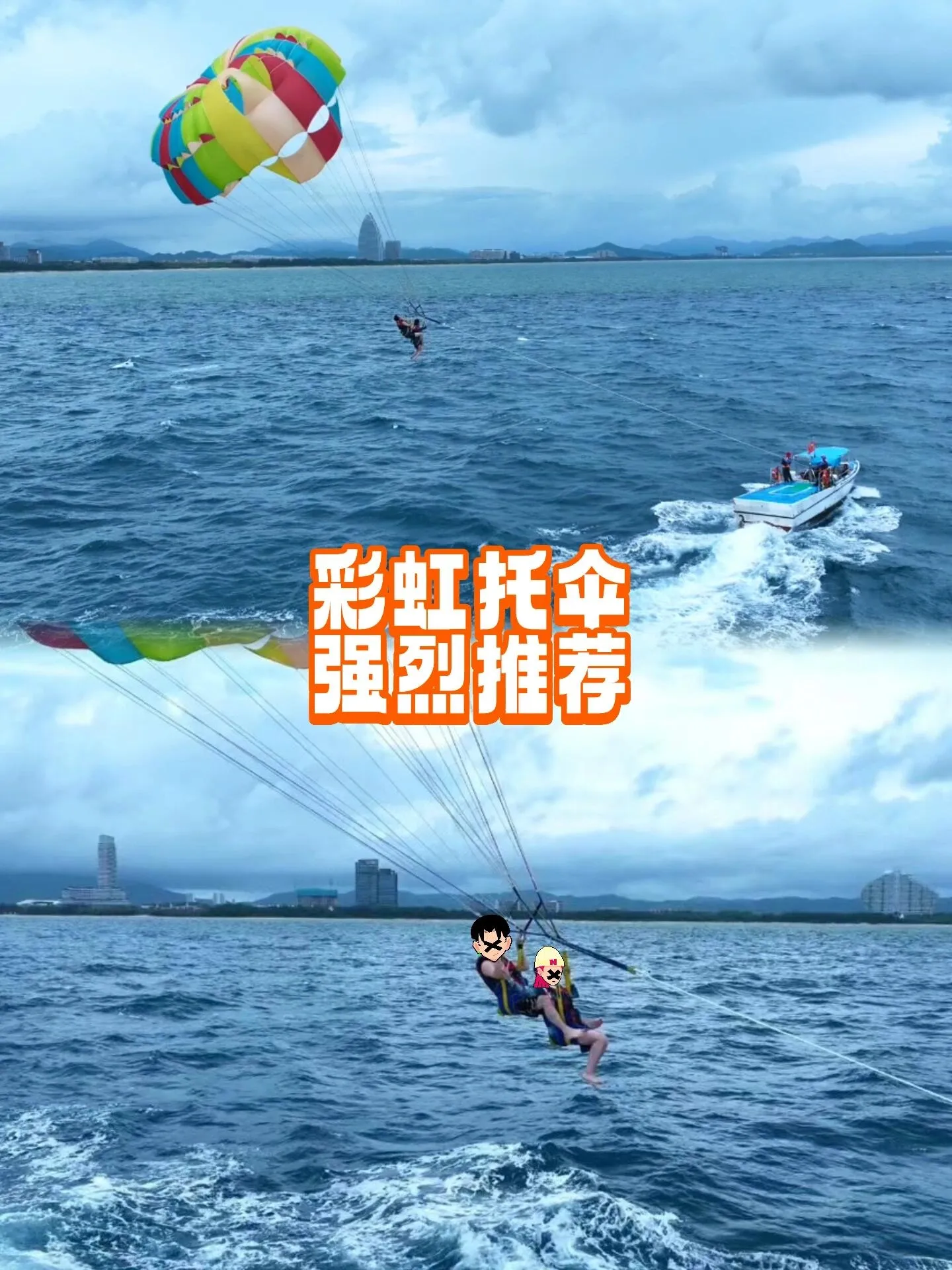 彩虹拖伞(难度:★):强烈推荐!会带你到海上,然后挂在拖伞上在天空飞行。最精彩的是蜻蜓点水环节,会让你半个身体接触海水(如不方便可以不做这个动作)。