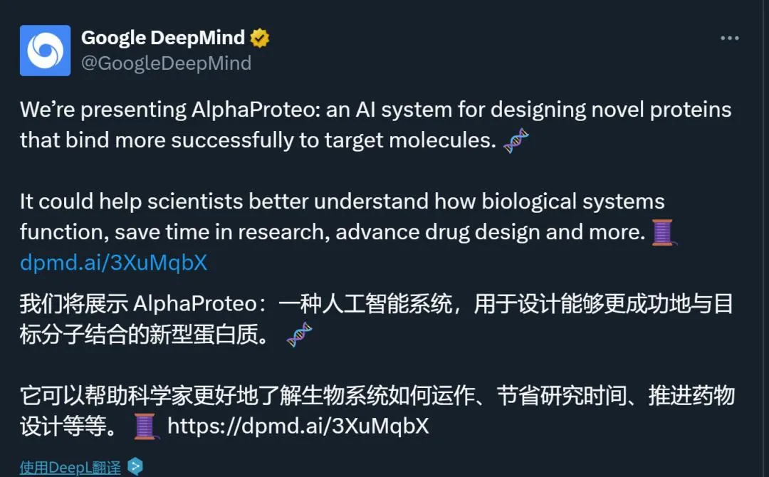 Google DeepMind 团队推出了一种用于设计 与目标分子结合更紧密 的新型蛋白质的 AI 系统 AlphaProteo。