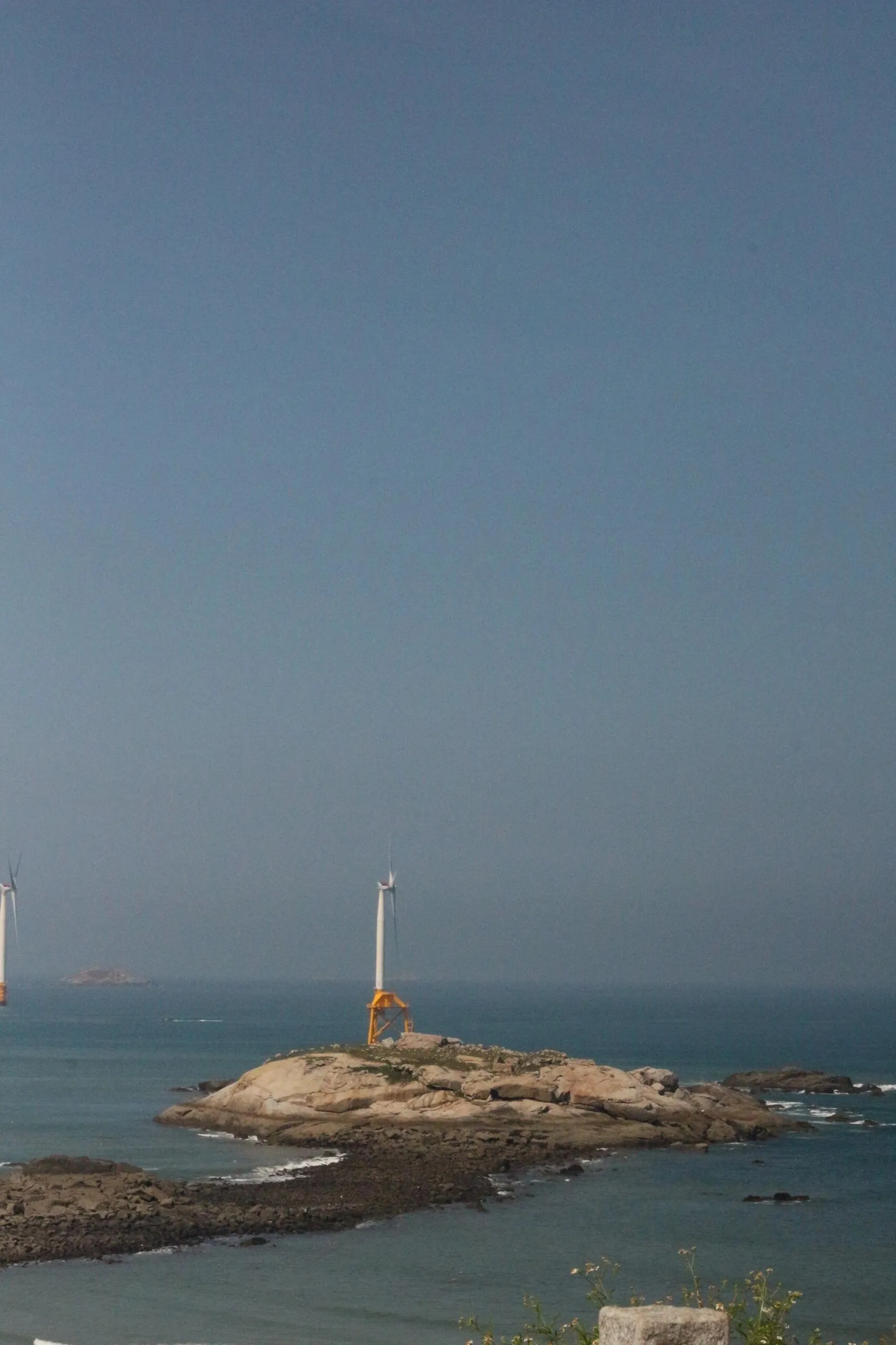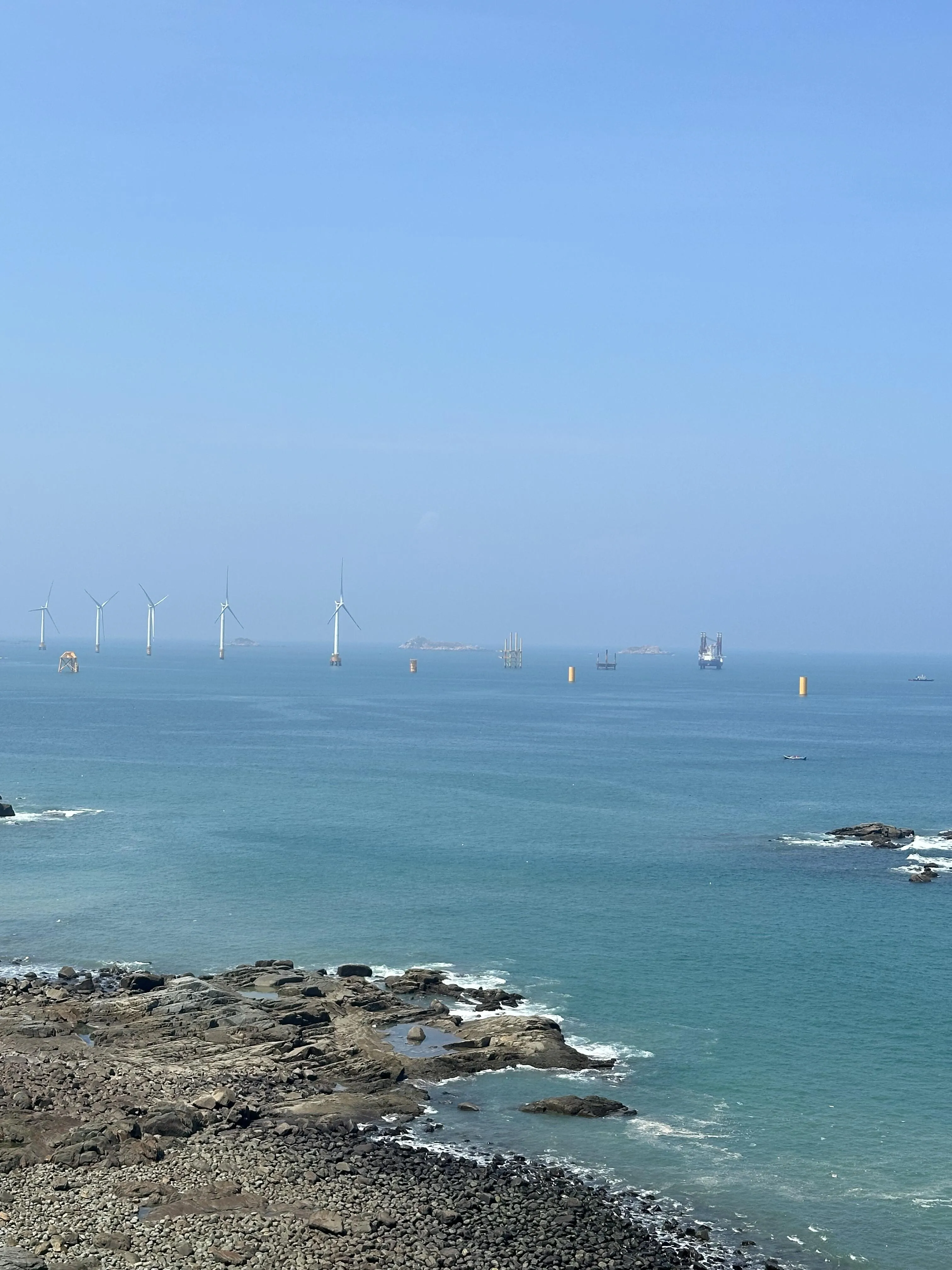 离开镜沙后不久就到达了 长江澳 。这里有许多大型风车,海边遍布石头。可以看到不少当地人在此挖掘什么,也有游客在抓螃蟹。黄昏时分,风车与落日相映成趣,景色十分迷人。