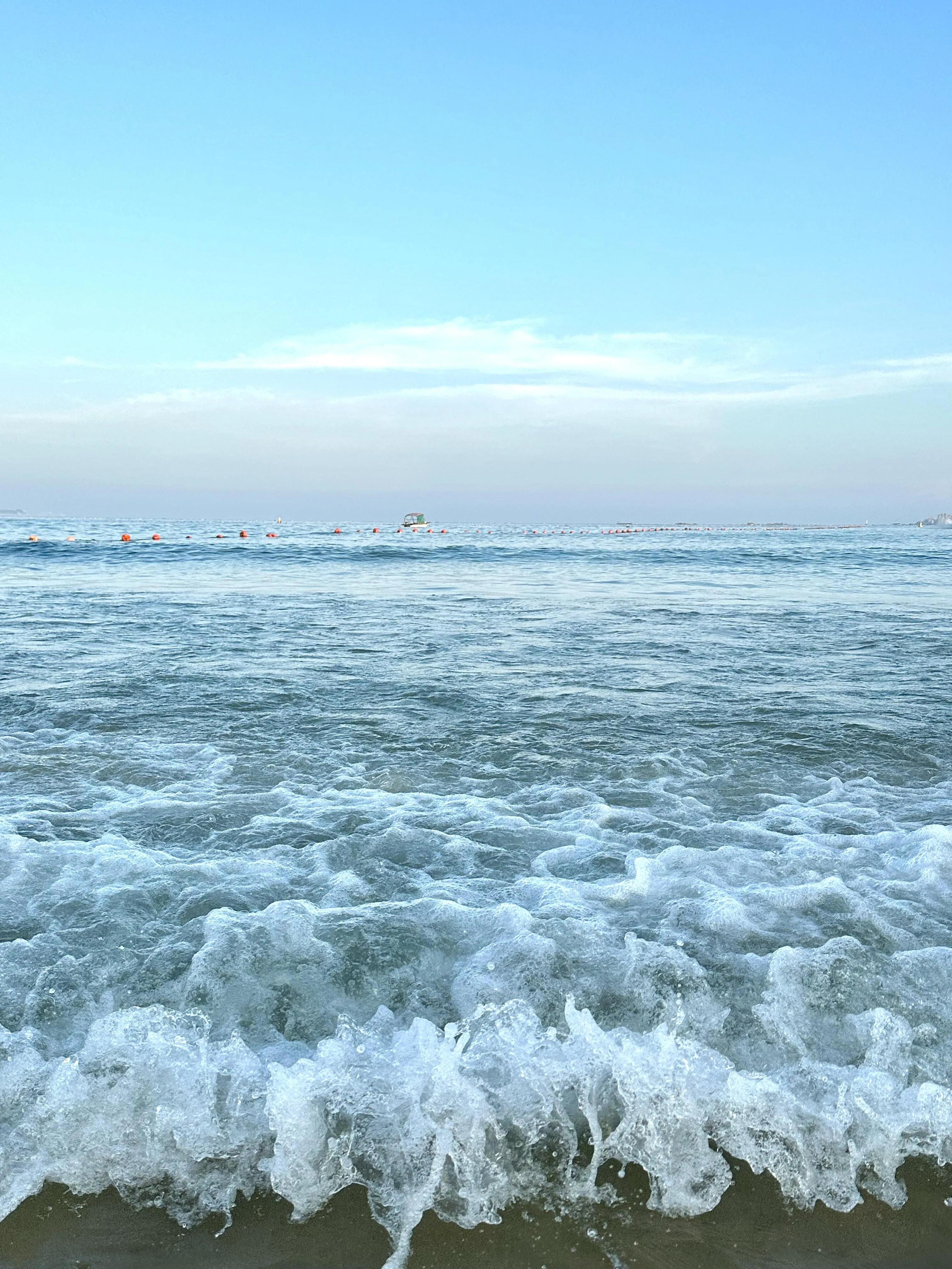 最后来到了一处 人迹罕至的海滩 。这里的海水格外湛蓝,沙滩上点缀着贝壳。海边有两个秋千可供拍照,还能看到一些人在进行滑板冲浪。
