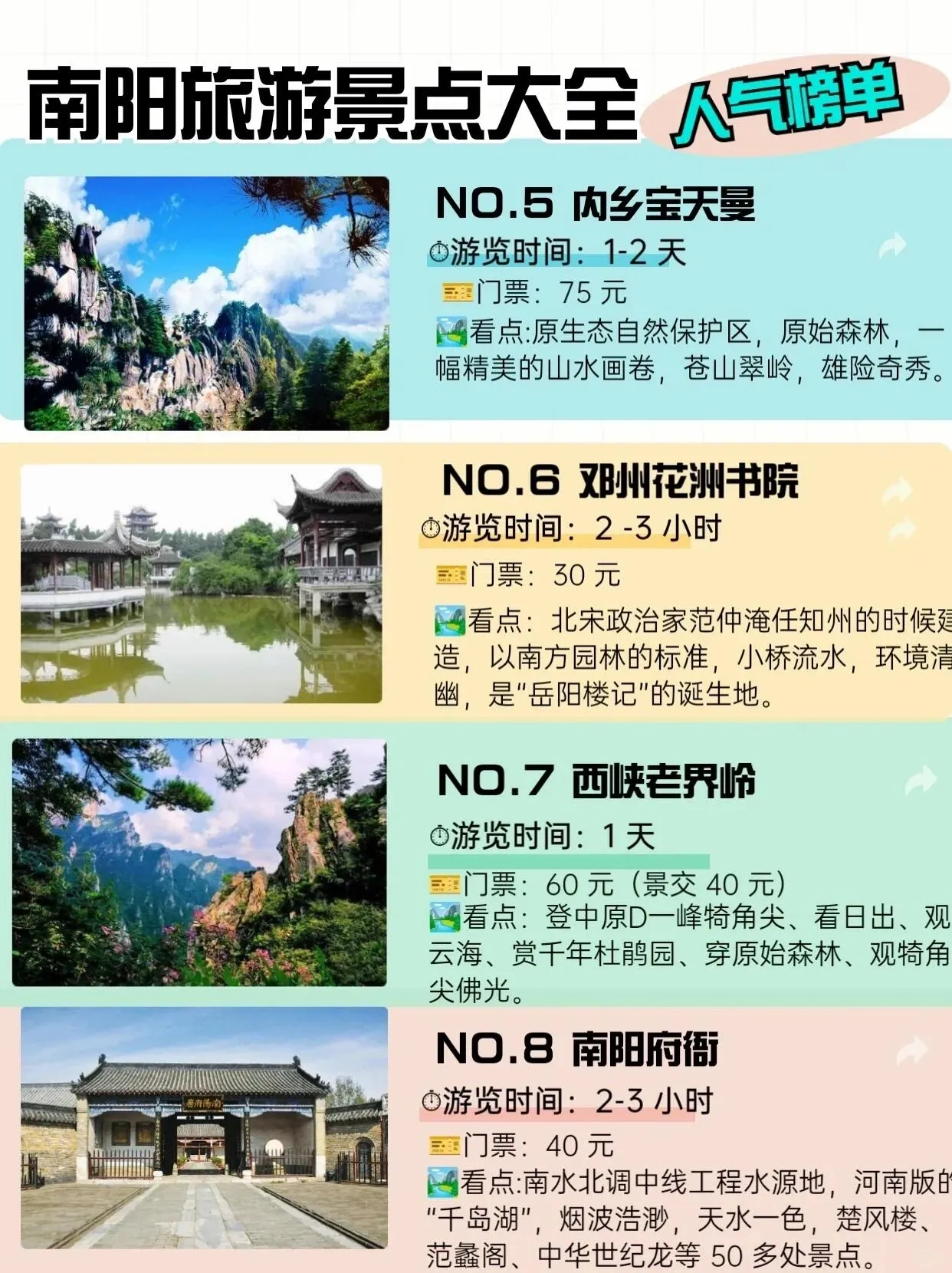 游玩南阳,可以参考以下路线: