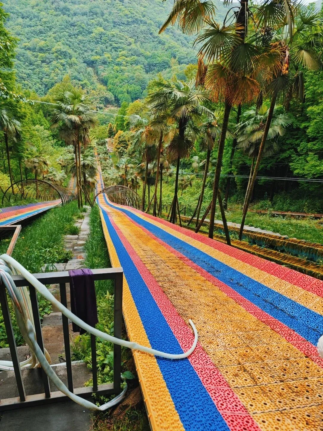彩虹滑道:坐着皮圈一路自由下滑,中途还有喷水惊喜。