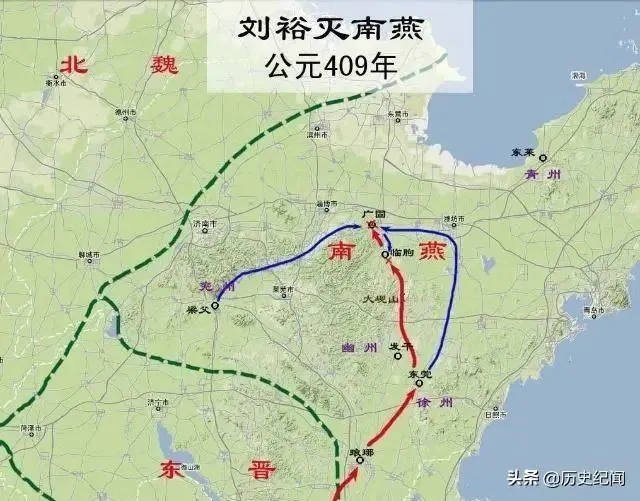 于是刘裕挥师北上攻打南燕,一路势如破竹,直攻到其都城,并将南燕皇帝带回东晋斩首。