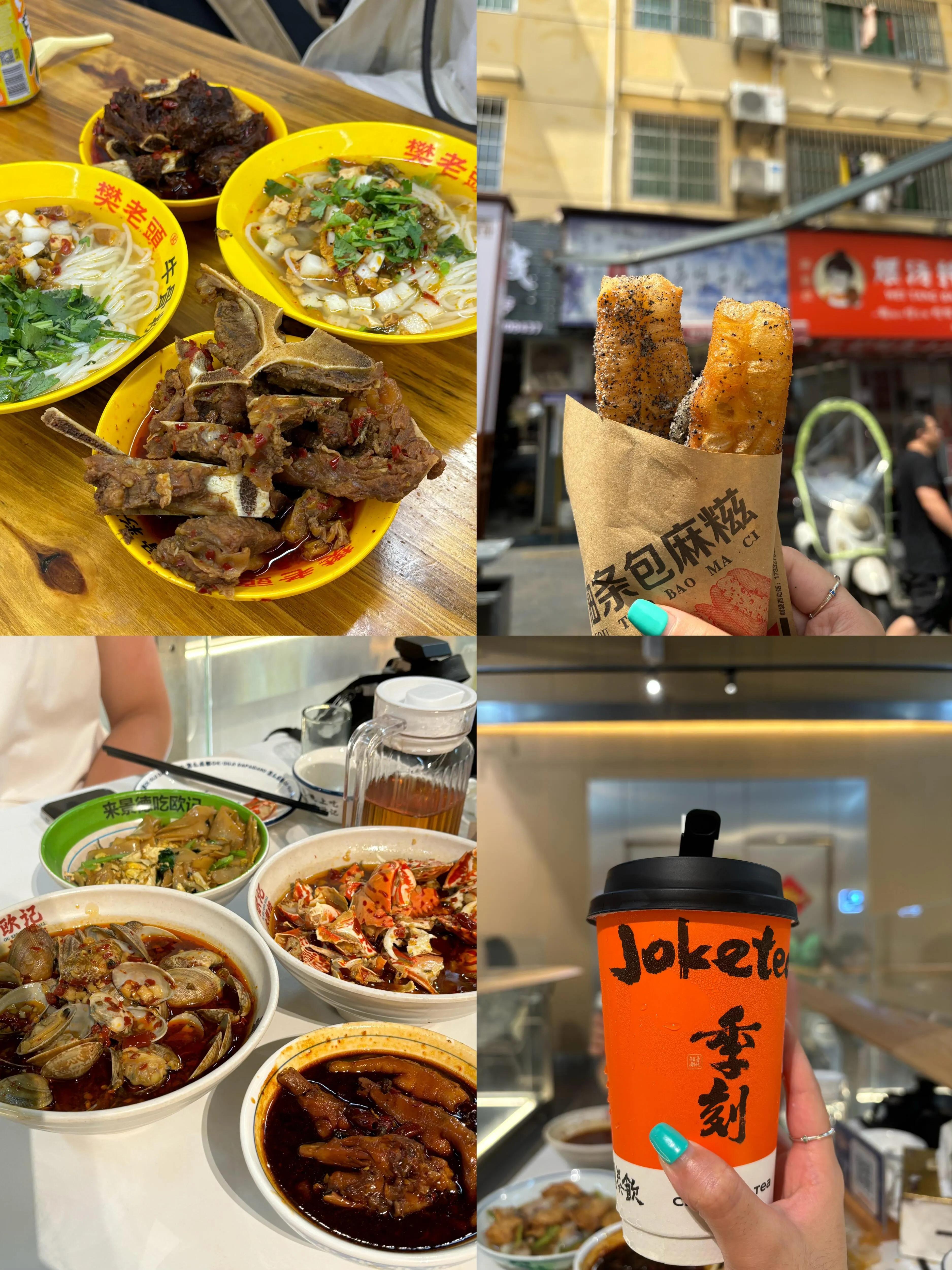早餐可以选择抚州弄,推荐樊老头辣牛骨、绿豆汤和油条包麻糍。