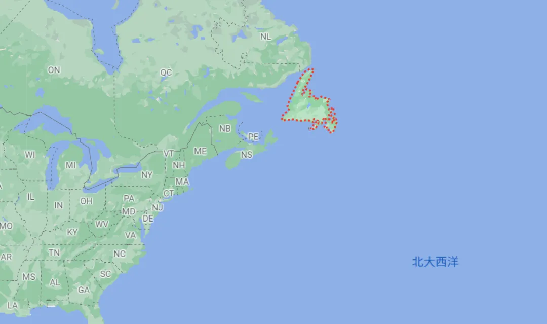 起初仅100多万平方公里,距法国圣皮埃尔和密克隆群岛约100余公里。