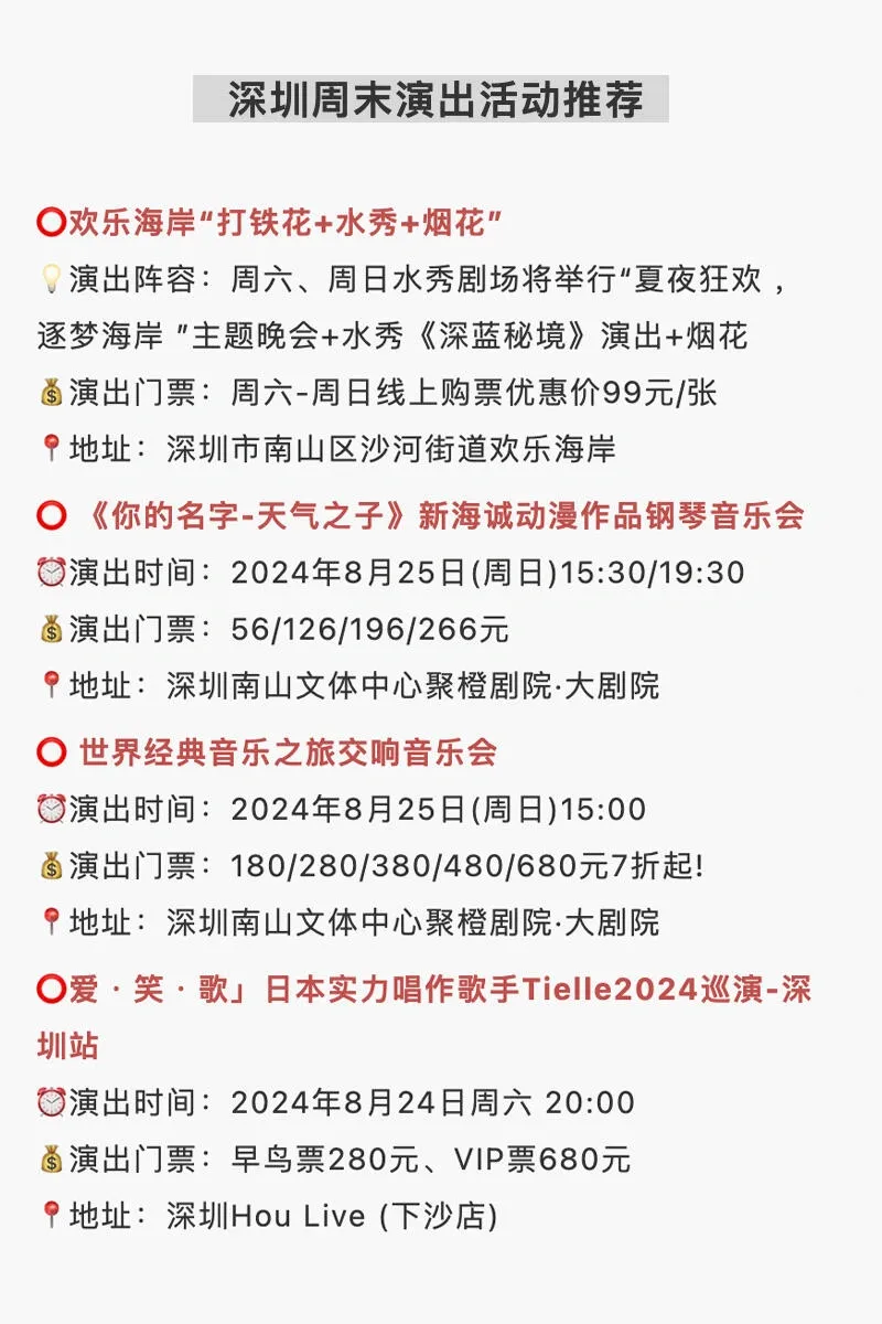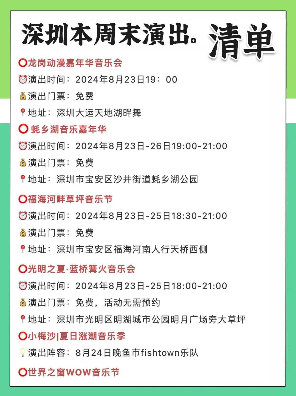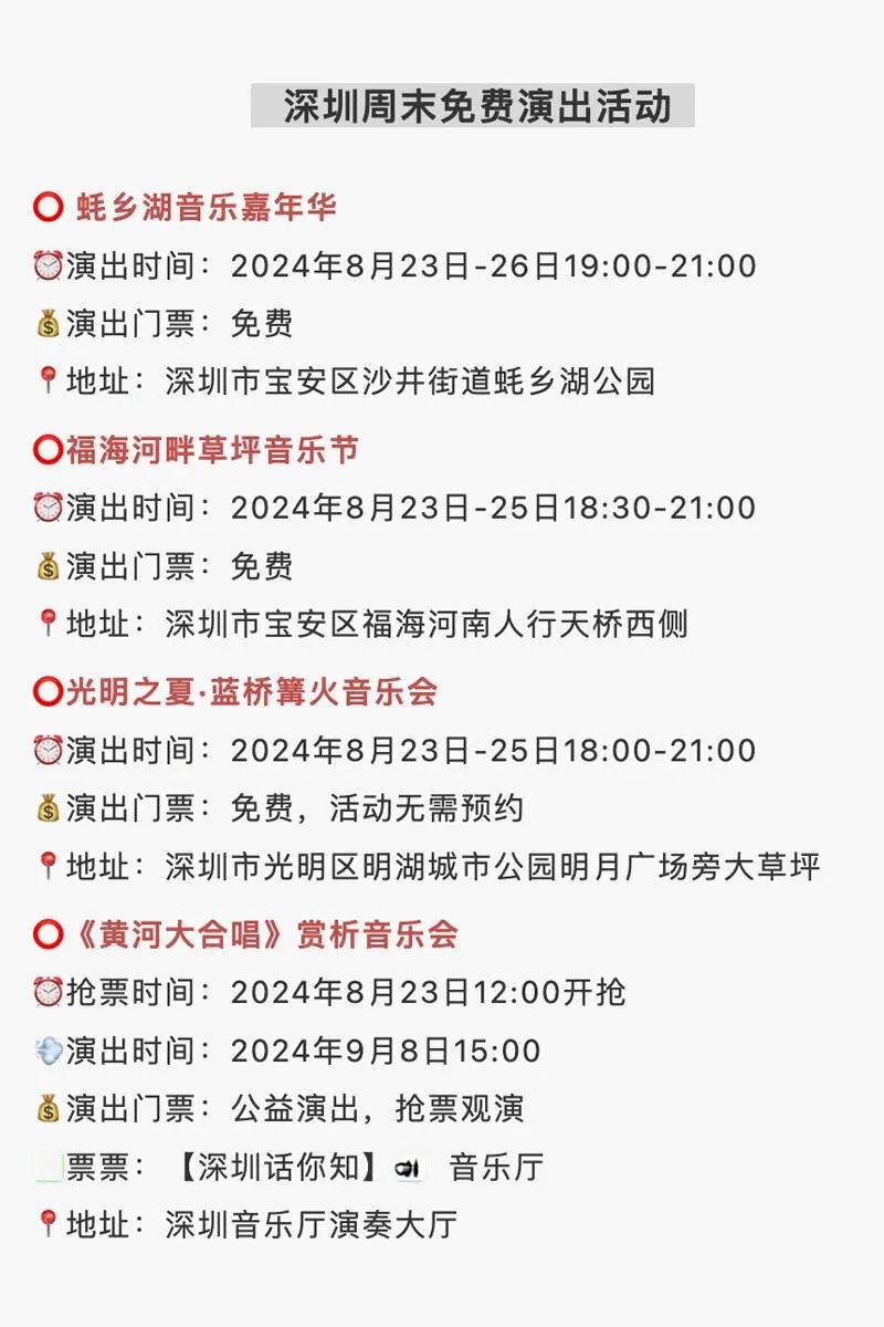 无论你喜欢什么类型的音乐,这个周末在深圳都能找到心仪的演出!快来感受音乐的魅力吧!