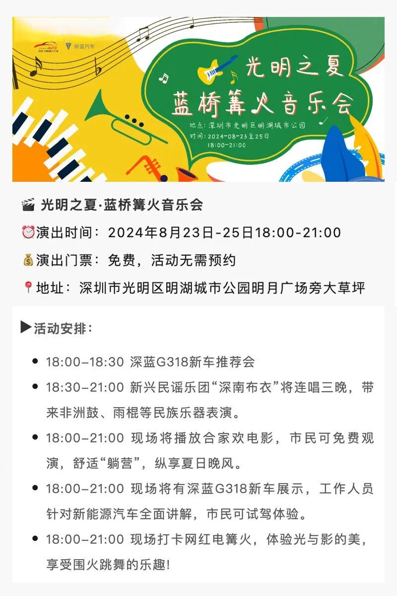 光明之夏·蓝桥篝火音乐会,在光明区明湖城市公园明月广场旁大草坪举办。