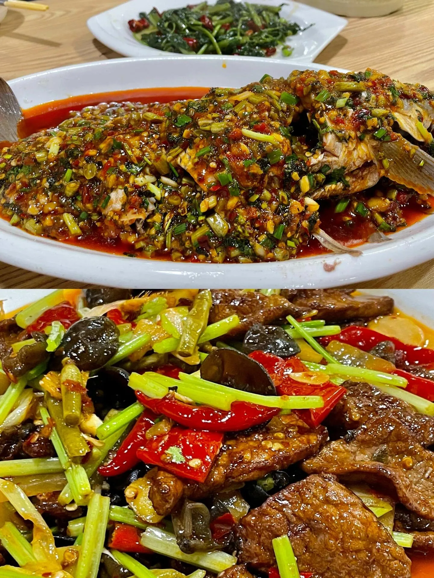 唐克镇黄河九曲第一湾附近的一家川菜馆,62块的三人套餐简直不敢相信, 砂锅鱼的量大到我们都没吃完。