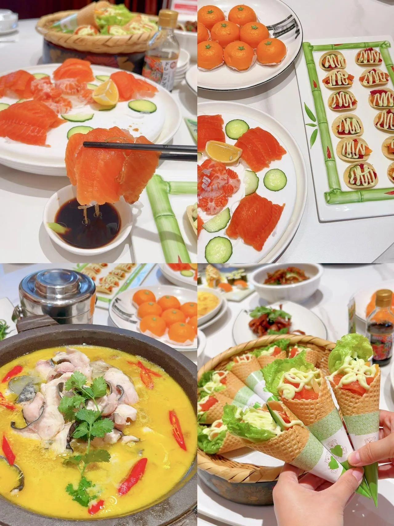 首先品尝了渔美人的三文鱼 ,真的香绝了。厨房透明,现切现做,非常干净卫生。我们点了新鲜的三文鱼刺身、脆皮果蔬三文鱼、水果三文鱼沙拉、三文鱼香芒卷、三文鱼手握等等。三文鱼不仅新鲜美味,口感也是超级棒。还有超好吃的湘菜,真的不会踩雷,闭眼冲!