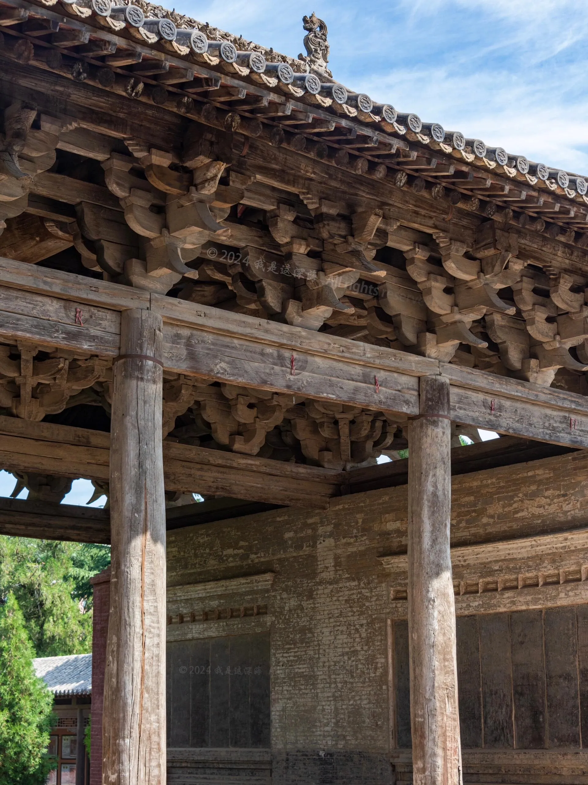 飞云楼共有345组斗拱,形态变化万千,给人以临空欲飞之感。这也是“飞云”之名的由来。关于楼的建造,有两个广为流传的传说:一说是鲁班的作品;另一说则与唐太宗李世民有关,称他在平叛后于此地修建东岳庙,而飞云楼是唯一保存至今的建筑。