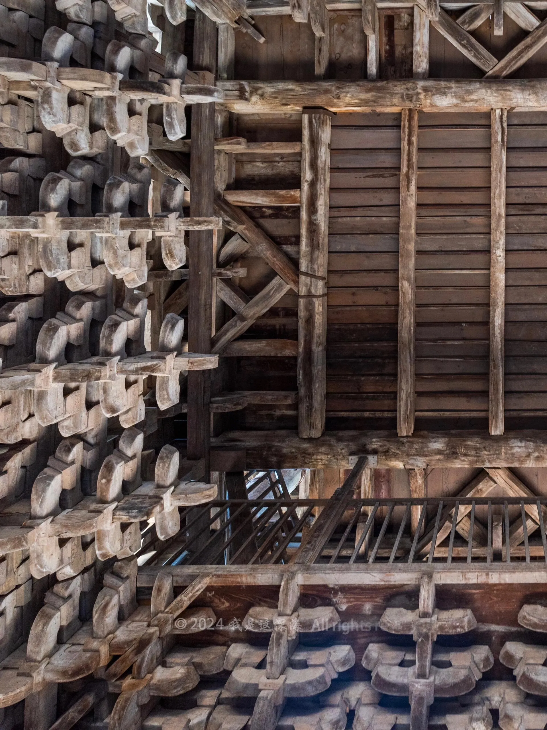 最引人注目的是飞云楼的全木结构。整座建筑未使用一根钉子,却能经历岁月洗礼而屹立不倒。楼中央四根通柱直达楼顶,这种设计在古建筑中十分罕见。