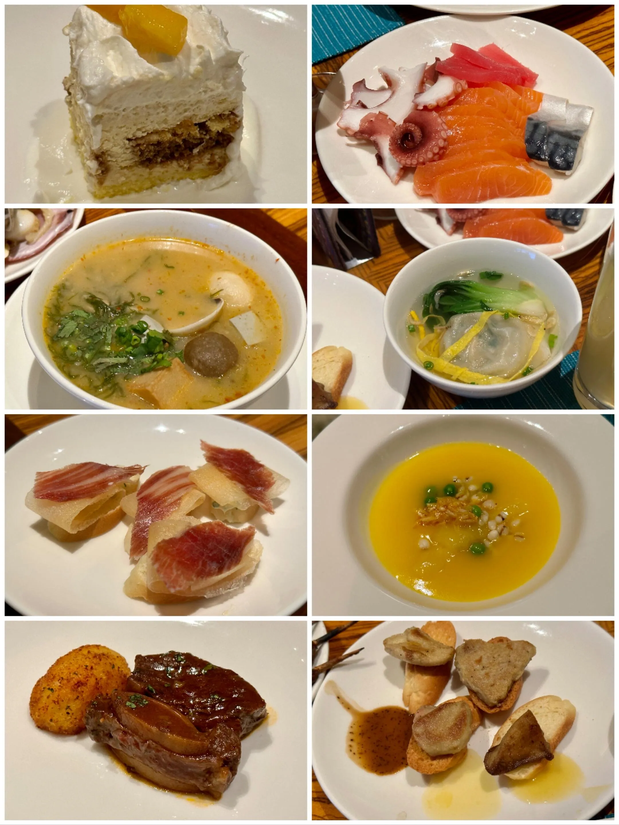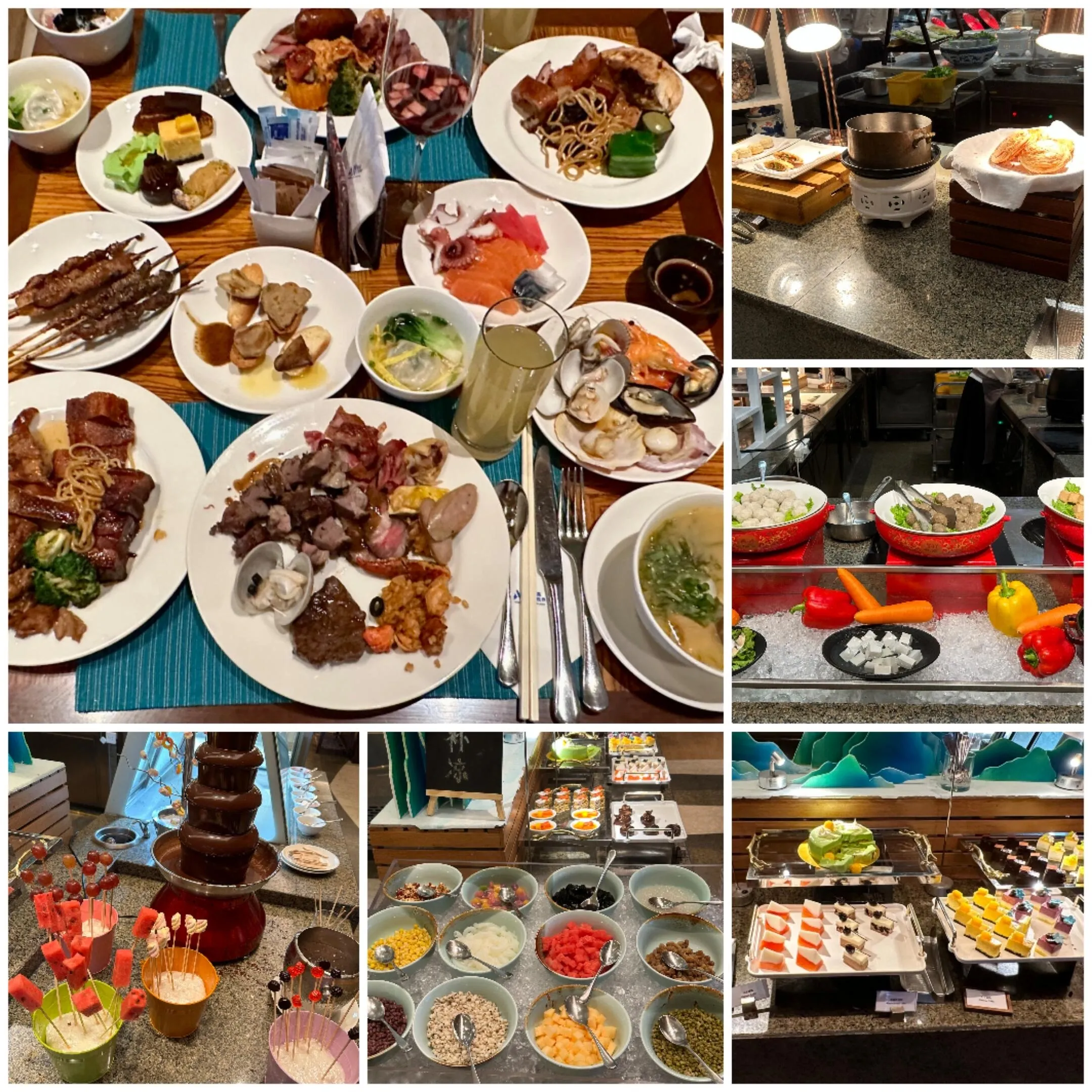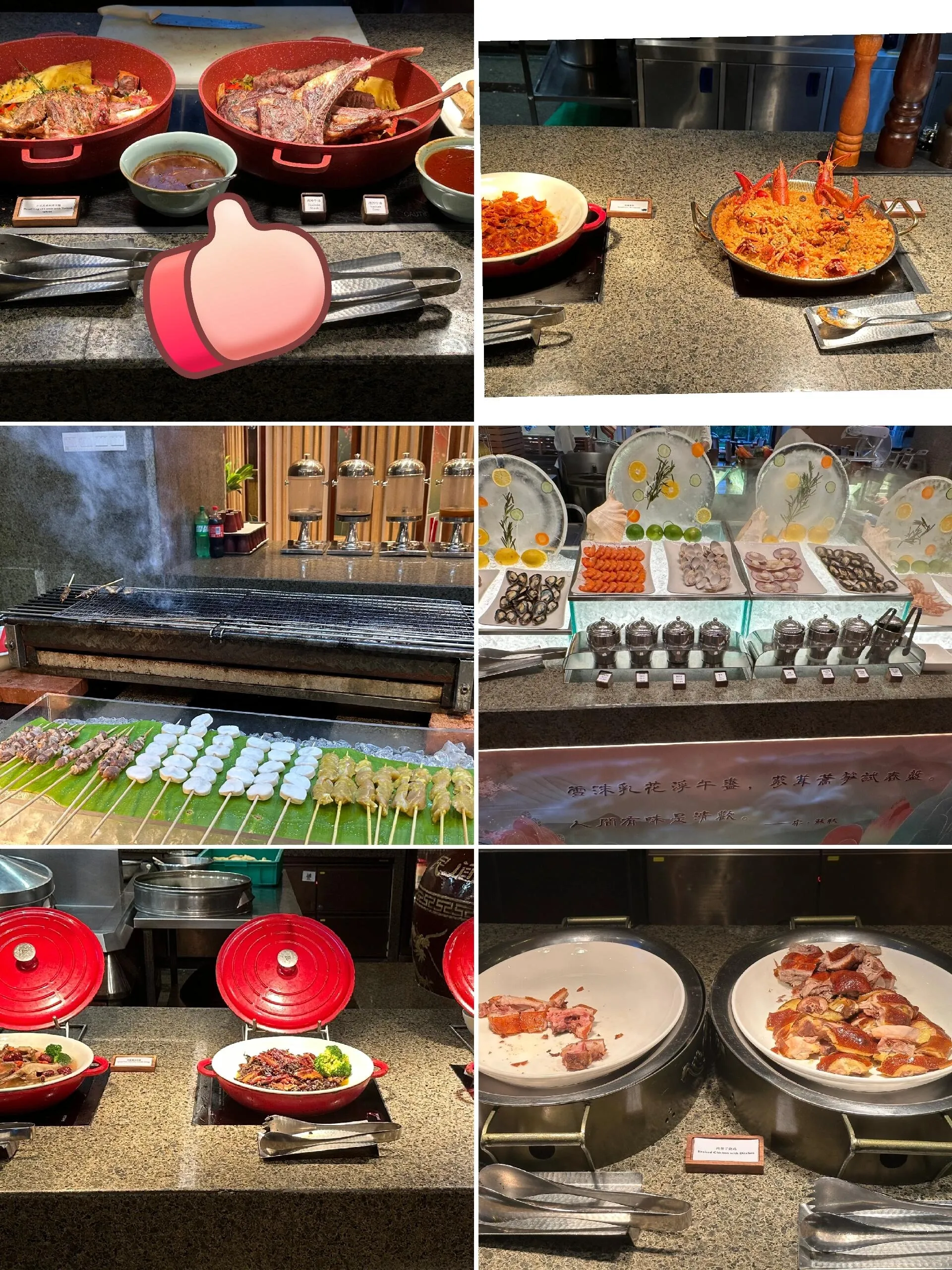 周五至周日供应的国风自助晚餐是一大亮点。餐厅分为西餐、日料、中餐和甜点几个区域。菜品种类适中但品质上乘。推荐战斧牛排、海鲜刺身、肉夹馍等特色菜品。甜品区品质极高,斑斓蛋糕和芒果蛋糕尤其出色。每人还可限量领取两个鹅肝。派送菜品如豚鱼馄饨、鱼肚汤等也很惊艳。