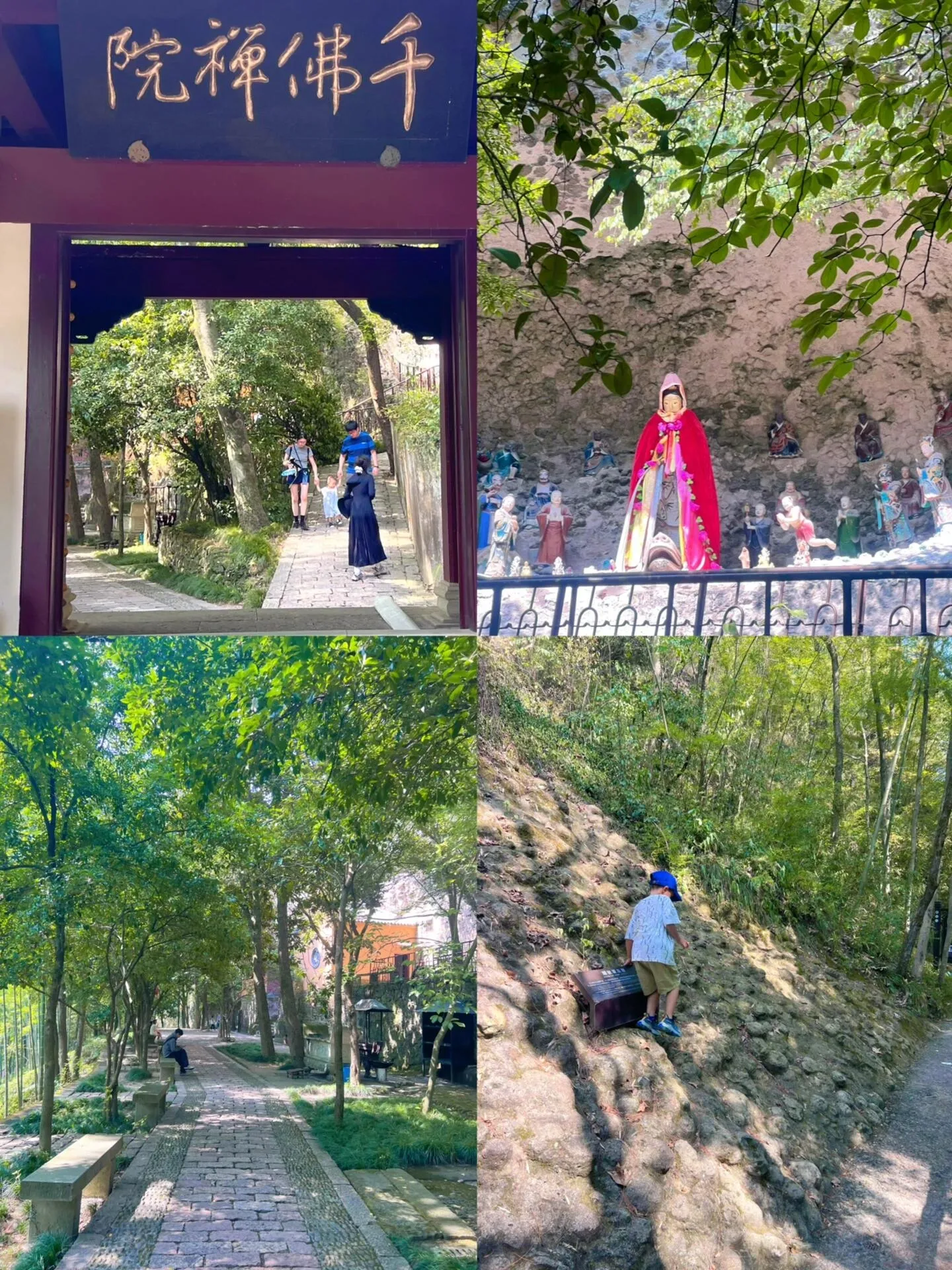 经过佛心广场和明黄寺墙,可以看到墙壁上巨大的佛字,随后便能观赏到江南第一大佛。千佛禅院位于佛心广场边上的小路尽头,沿途有栈道美景,可以欣赏瀑布和大佛寺全景。在终点处,游客还能看到亚洲第一卧佛,威严大气,令人惊艳。