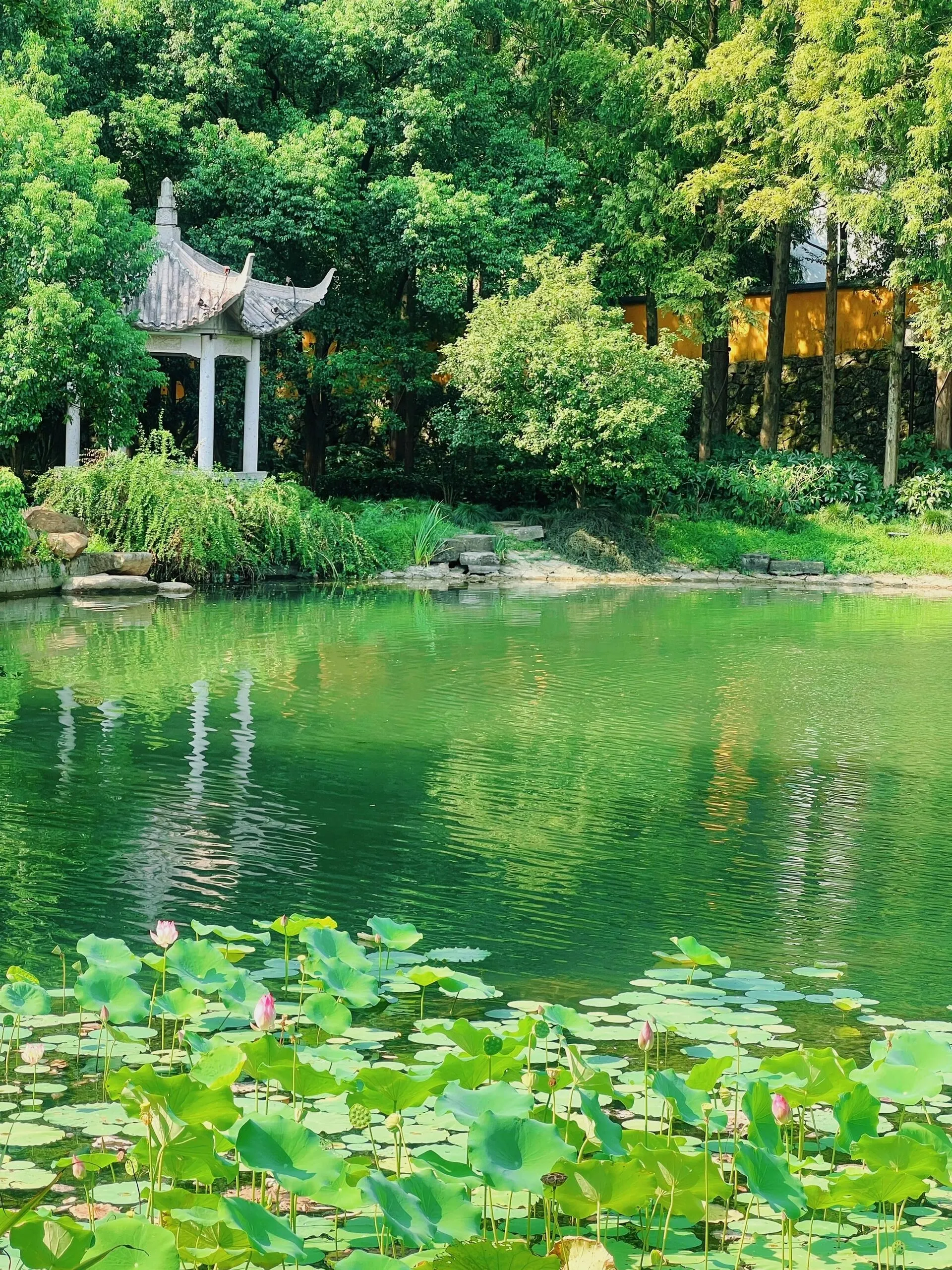 寺内的放生池碧绿清澈,周围凉风习习,十分舒适。池边可以品尝文创雪糕,欣赏古寺庙宇,感受内心的宁静。附近的文创书吧提供咖啡,还可以抄写心经,放空自己。