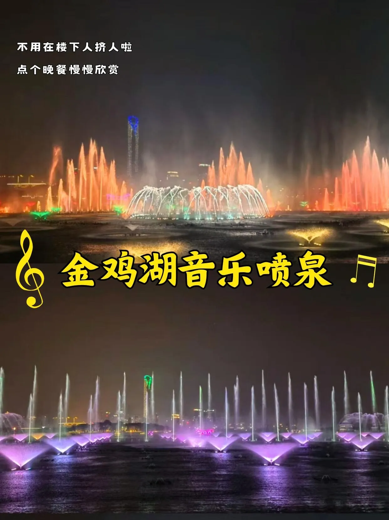 如果感到疲惫,可以直接前往东方之门53楼的淡气球餐厅。这里不仅能俯瞰整个金鸡湖,还提供高颜值下午茶,人均消费几十元。除了下午茶,这里的西餐也很不错,人均不到100元。最棒的是, 在这里还能欣赏到金鸡湖音乐喷泉的VIP视角 ,避开了地面的拥挤。