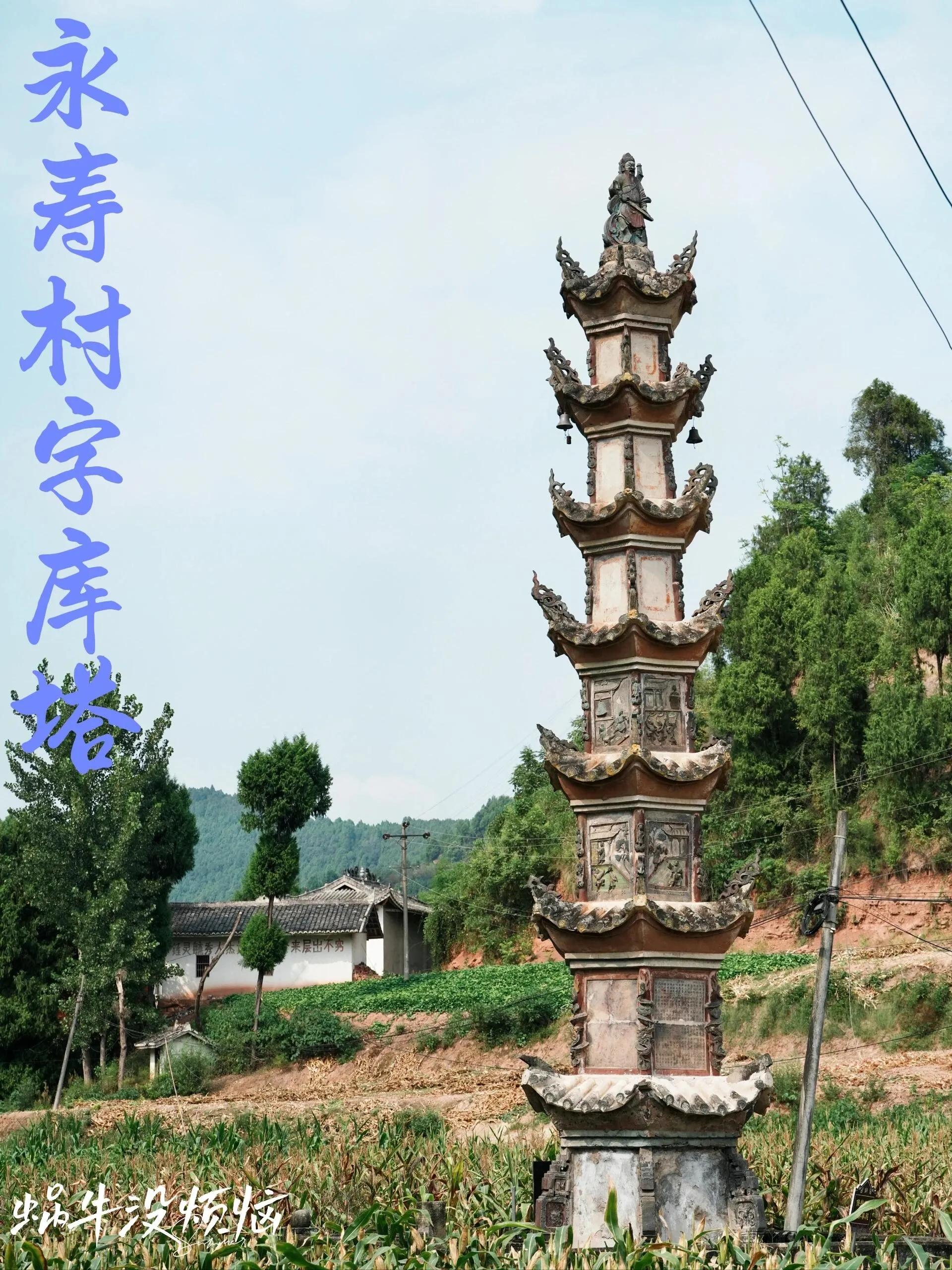 下午三点,在一天中气温最高的时候,终于见到了耸立在路边玉米地里的永寿村字库塔。这座塔比盐亭其他字库塔高出一大截,给人留下深刻印象。