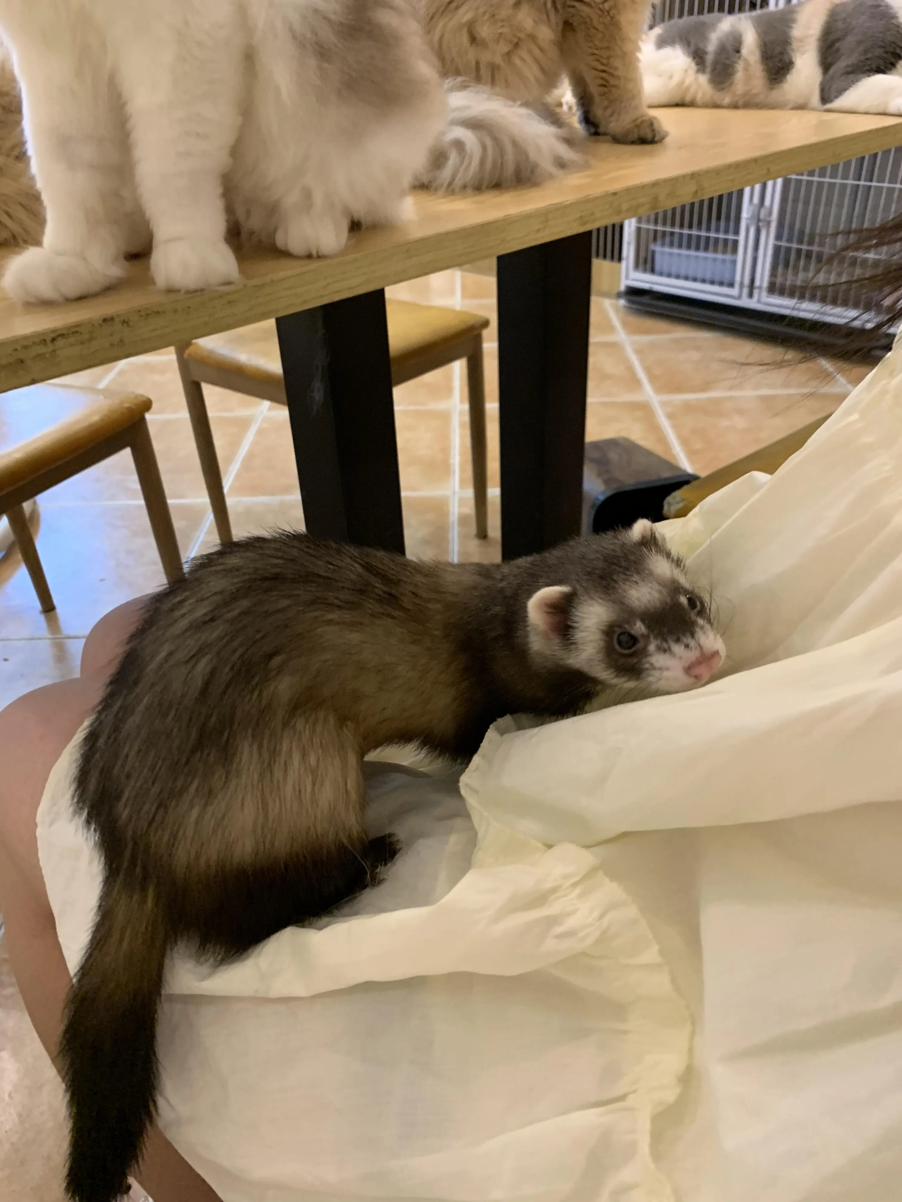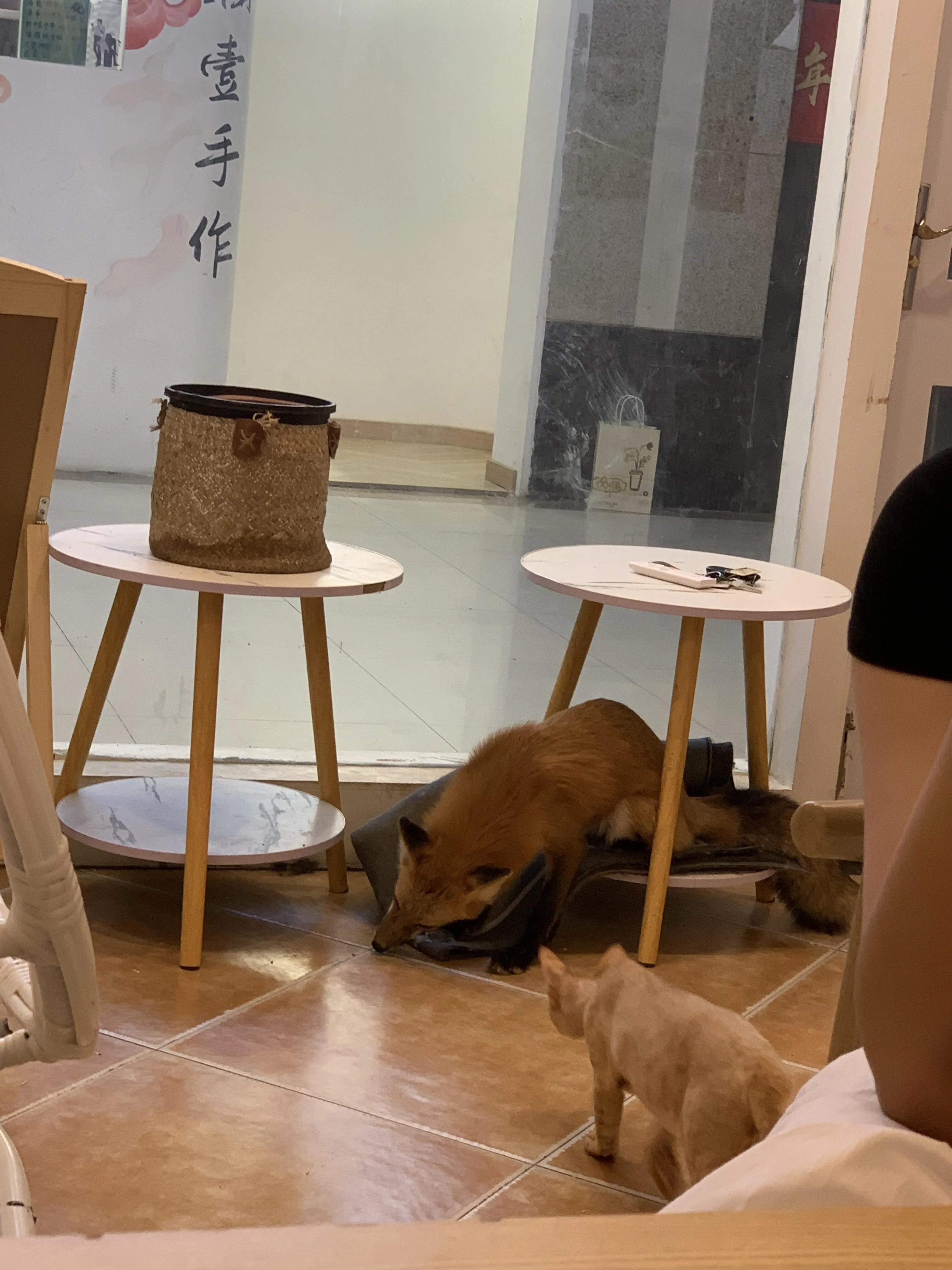 位于海宁中路19号8-138室的恒天新世界内有一家特别的宠物咖啡店。 虽然店面不大,但里面的小动物们都非常热情。 除了猫咪,这里还有两种特别的小动物:安格鲁貂和小狐狸。