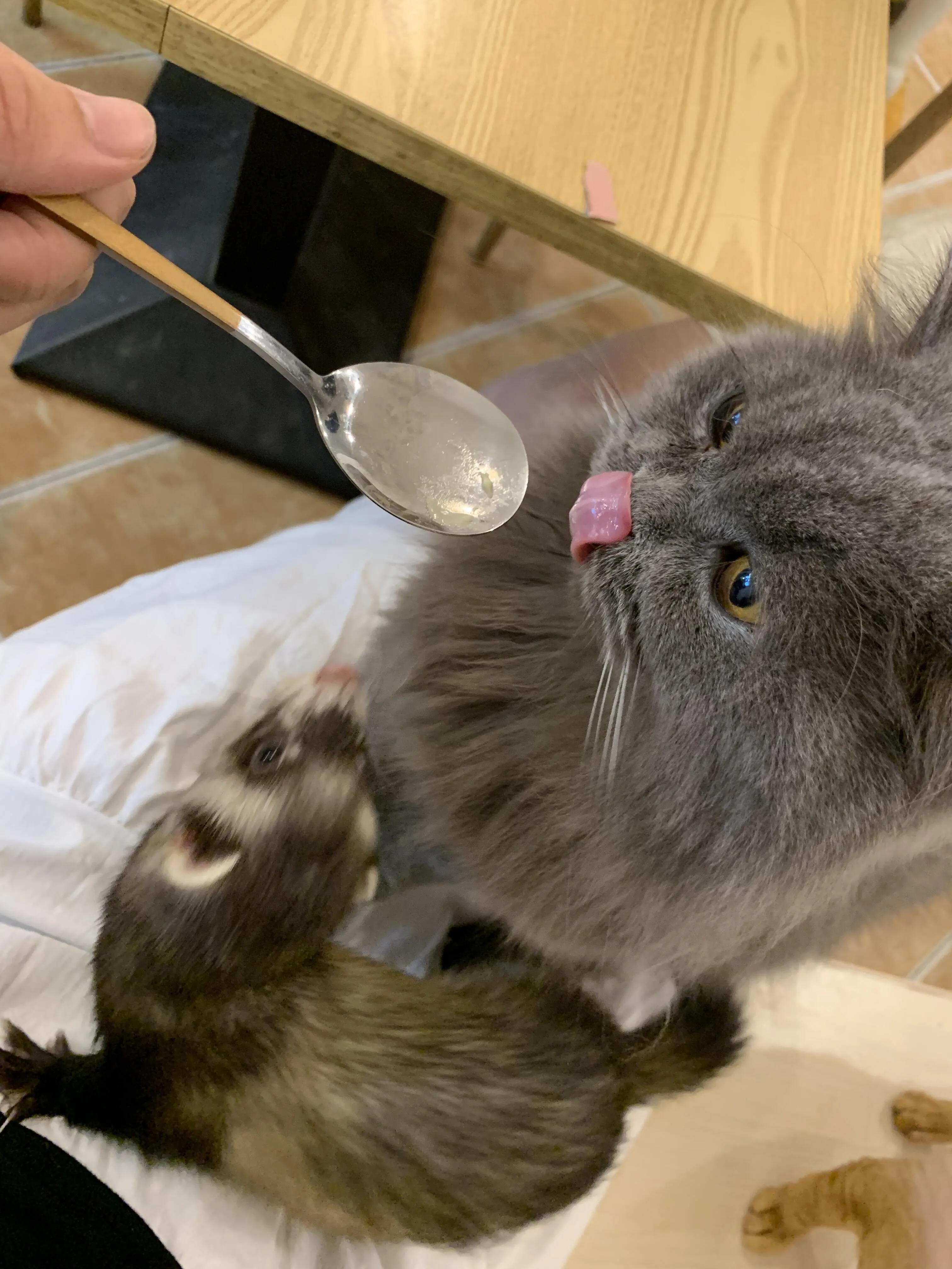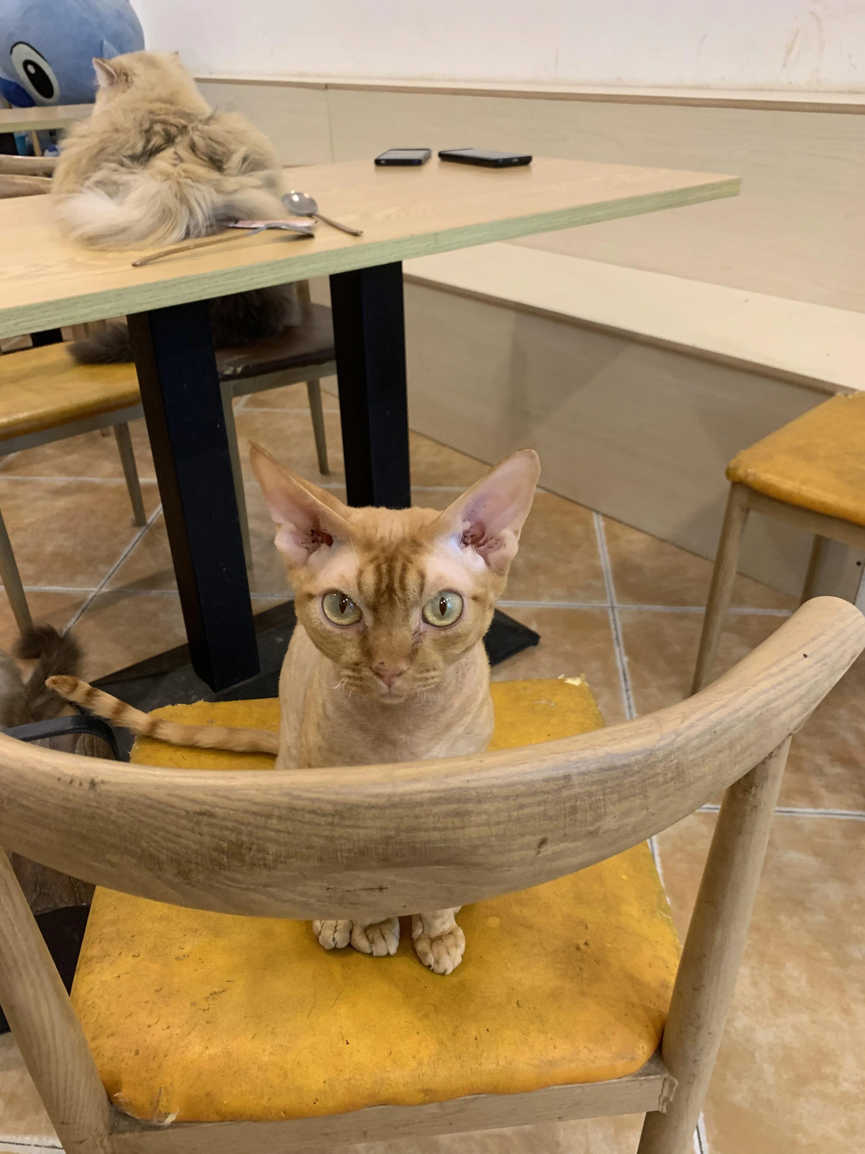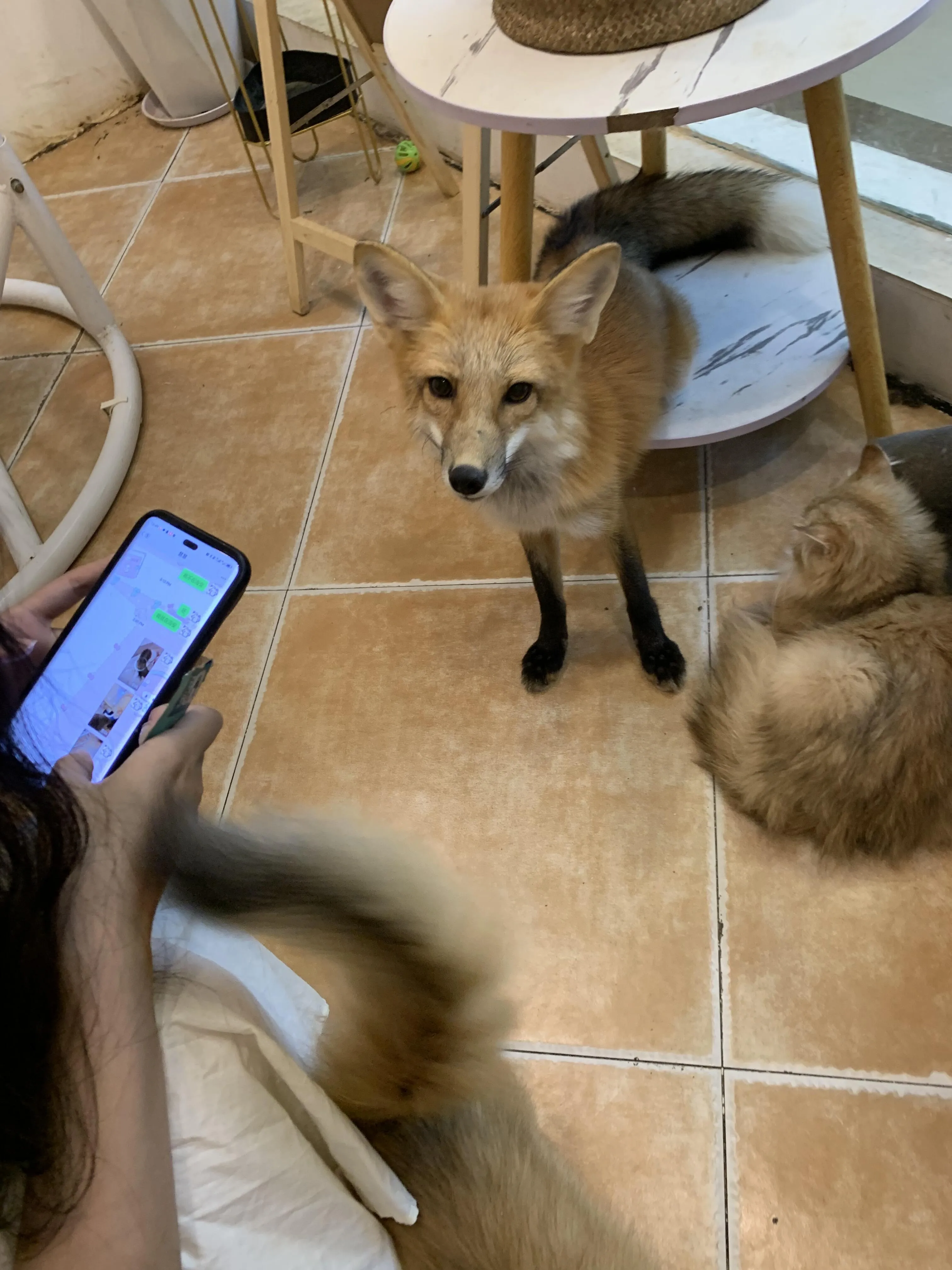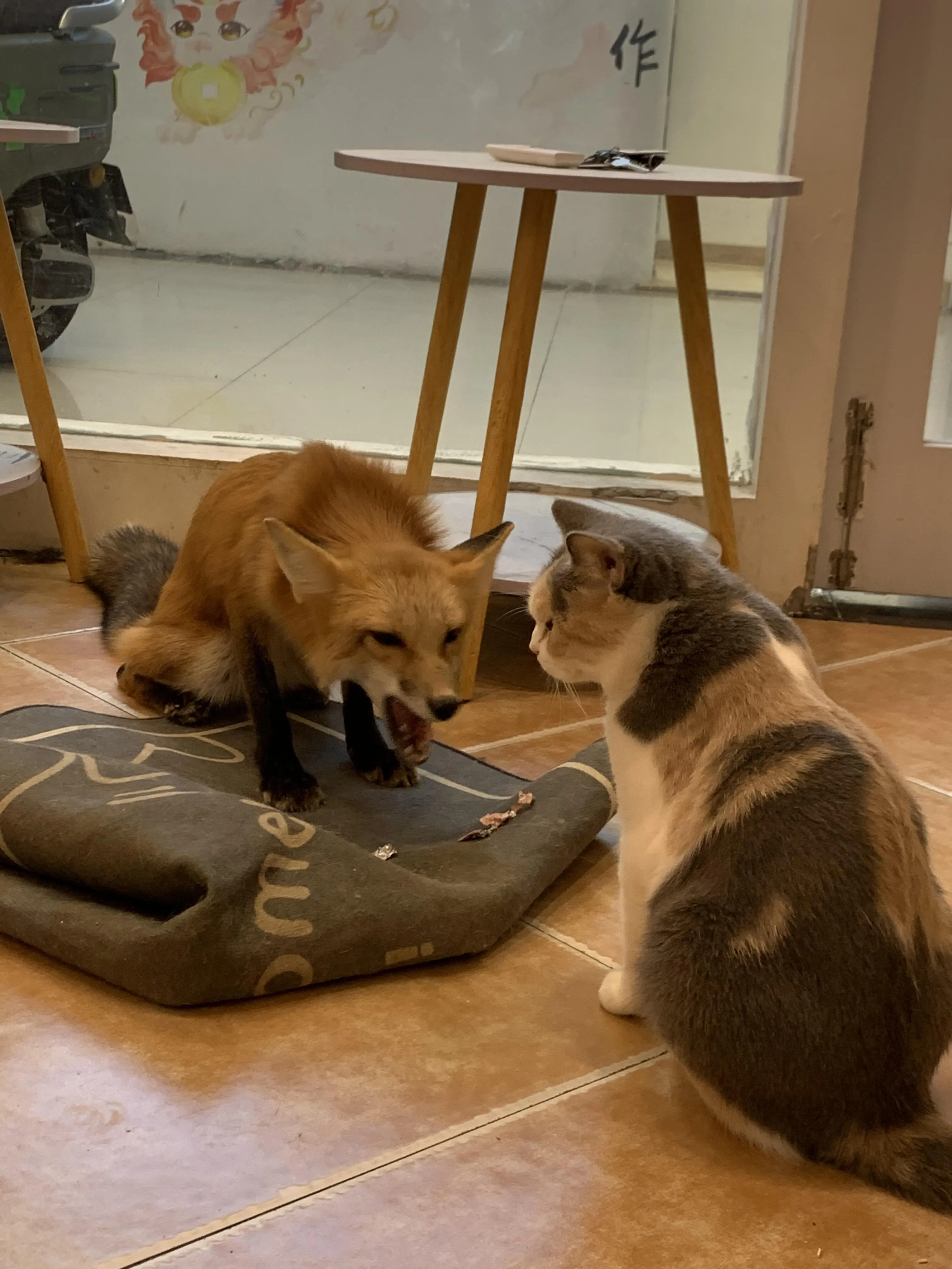 店里的猫咪们都很亲人,会主动亲近顾客。两只安格鲁貂中,较小的一只名叫六六,非常活泼,喜欢钻进顾客的包里。另一只较大的公貂叫大顺,性格较为文静,常常躲在玩偶后面睡觉。小狐狸则比较顽皮,行为更像小狗,但要注意它会偷偷叼走猫条。