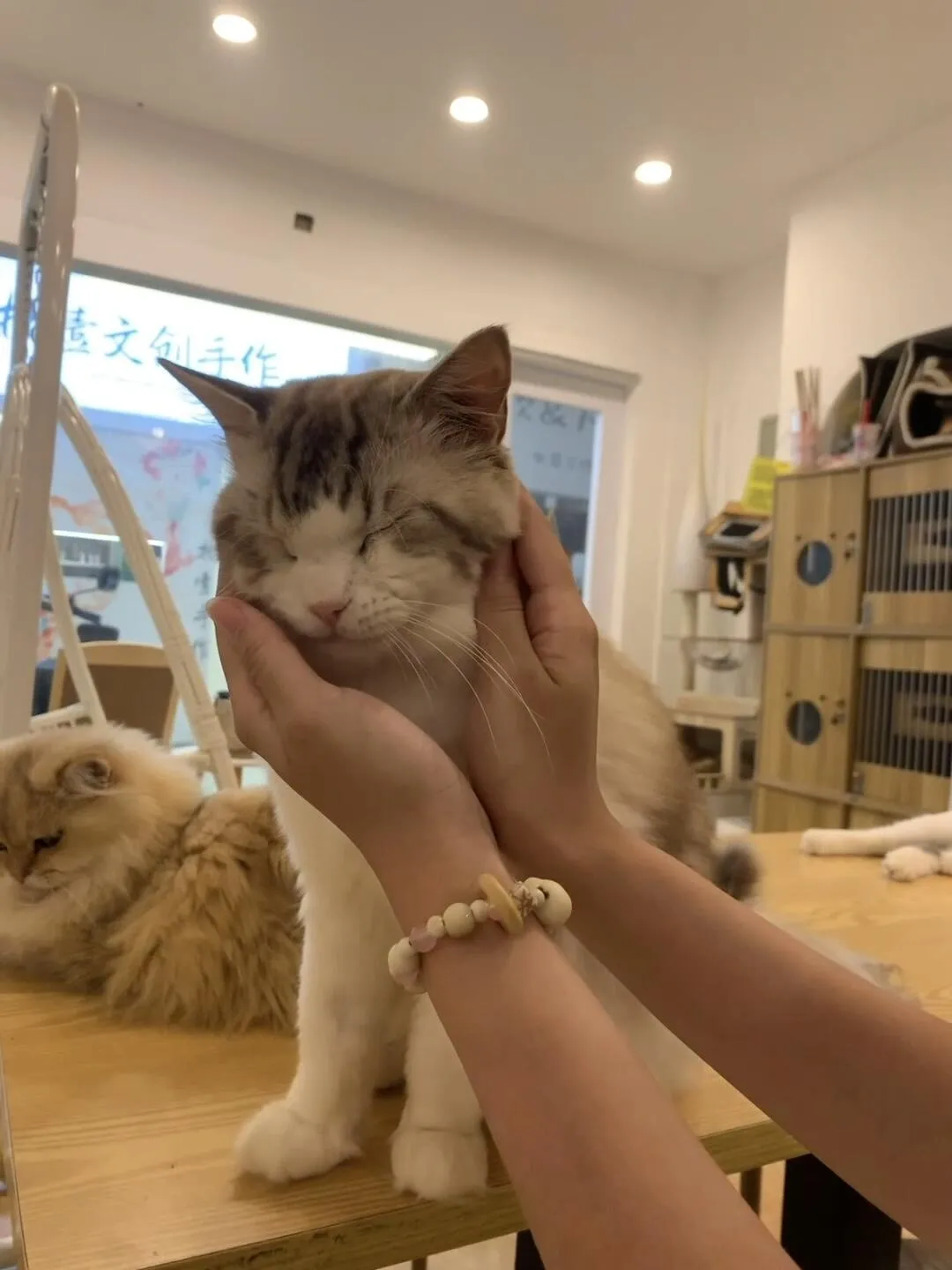 需要注意的是,虽然猫咪们都剪了指甲并接种了疫苗,但在互动过程中难免会有摩擦,店长也会事先告知顾客。因此, 不建议带很小的孩子前来。