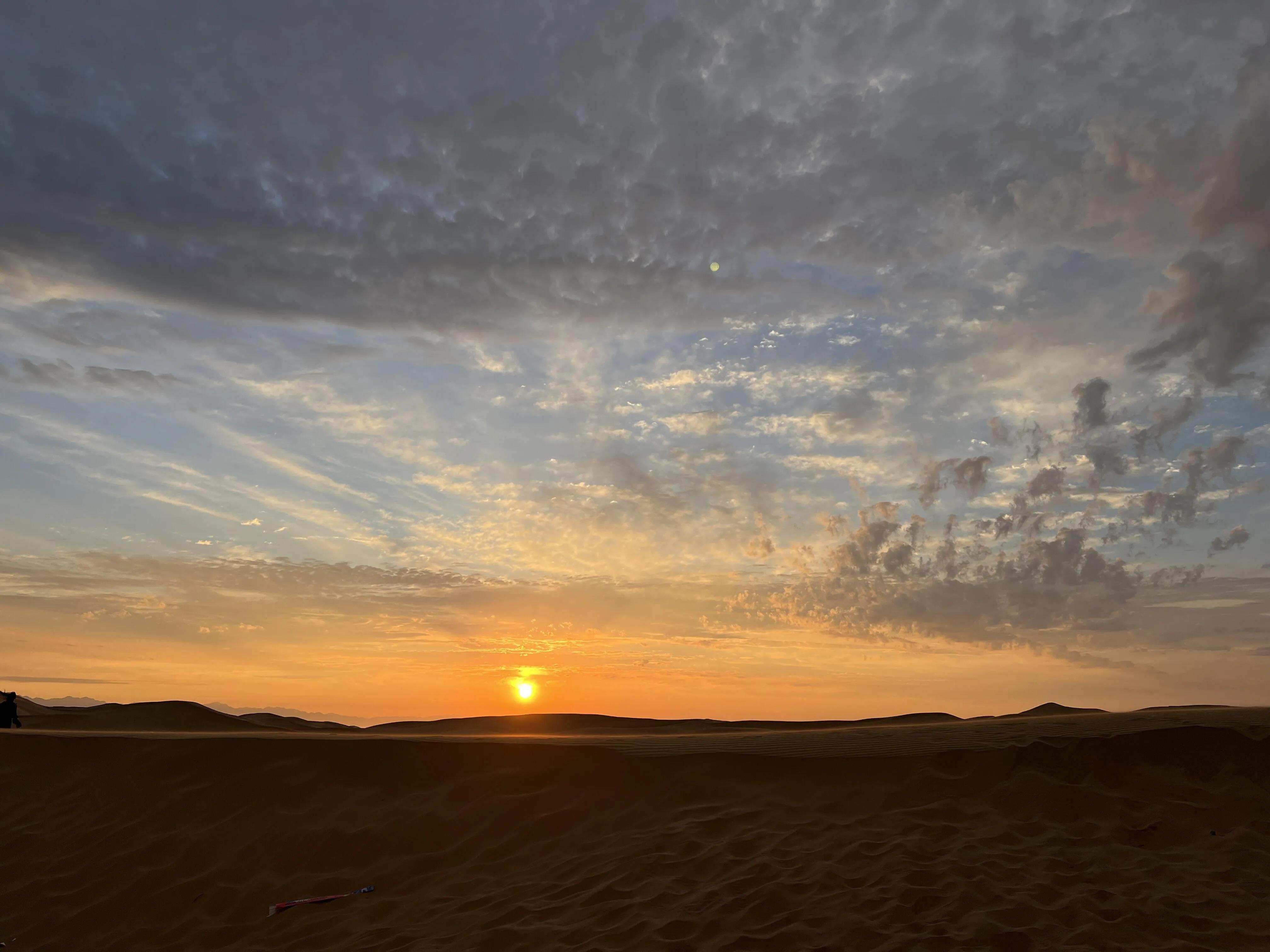 我强烈建议大家去夜鸣沙,而不是响沙湾。 趁它还没有爆火,赶紧去体验一下!原本我们也计划去响沙岭,毕竟很出名。但最终我们选择了一个人少、没有被过度开发的相对更原始一些的沙漠。