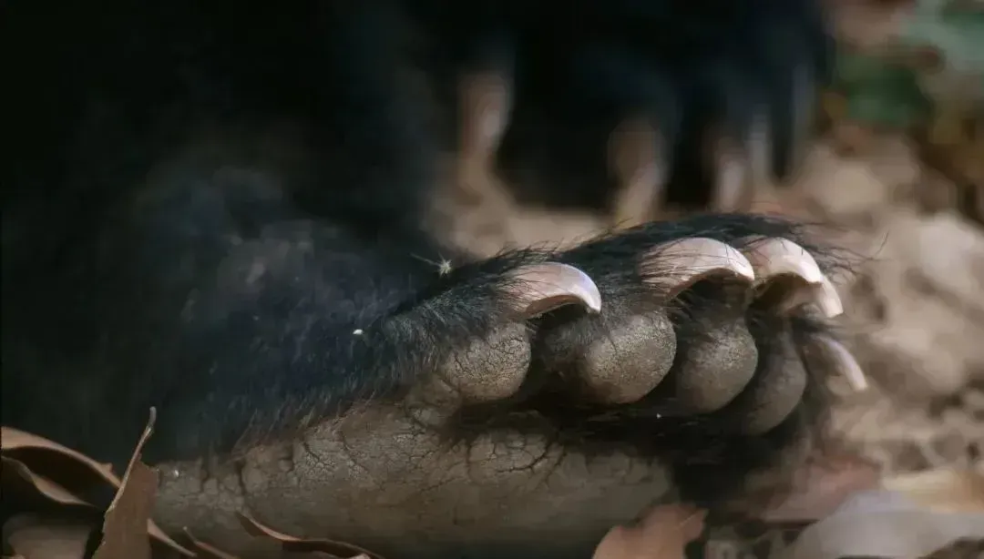 传统认为黑熊的脚掌存有大量的营养,冬眠时会舔掌来充饥。