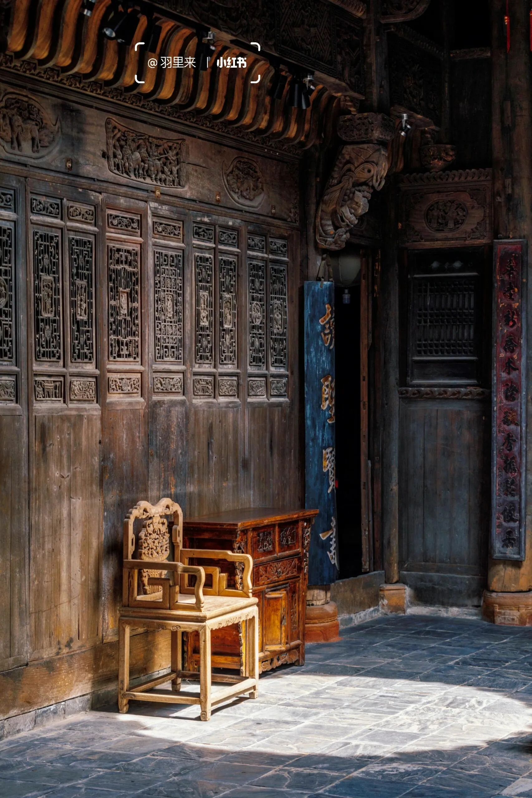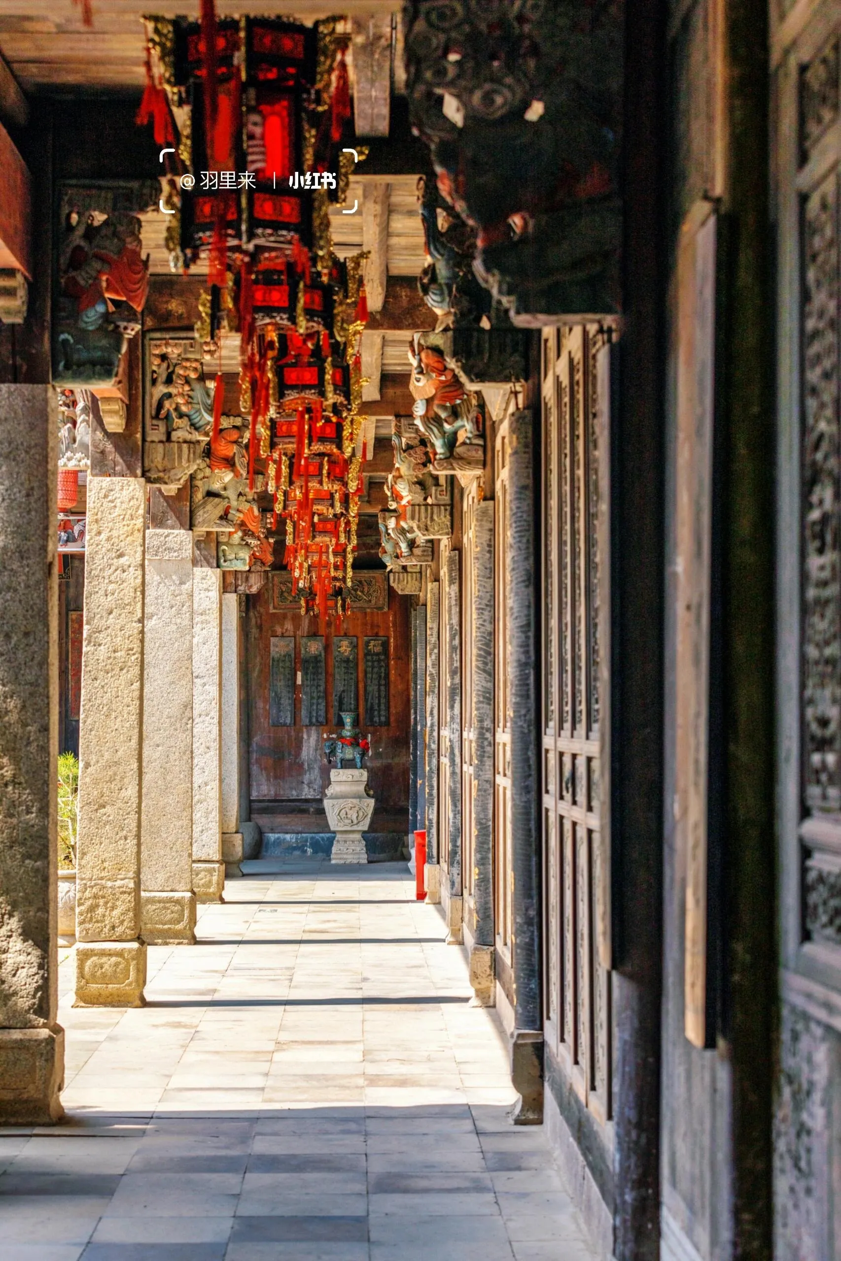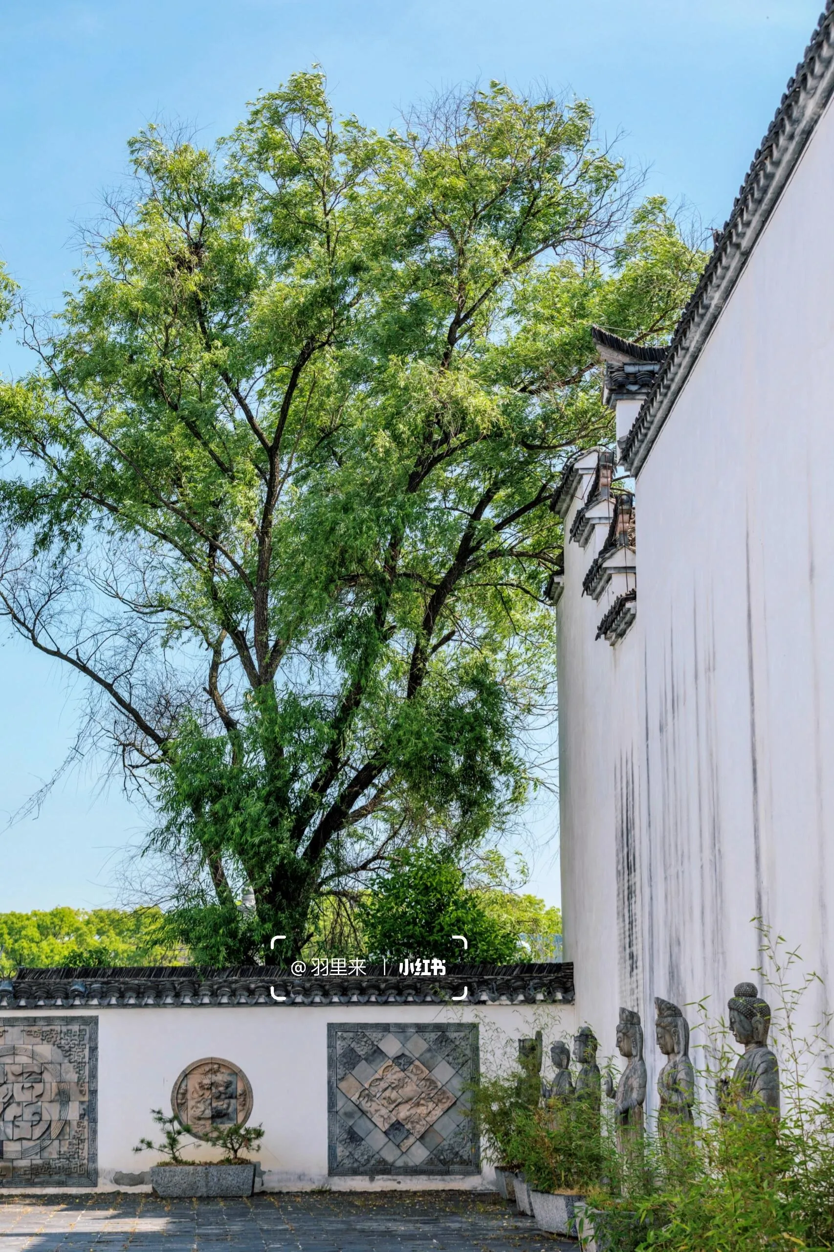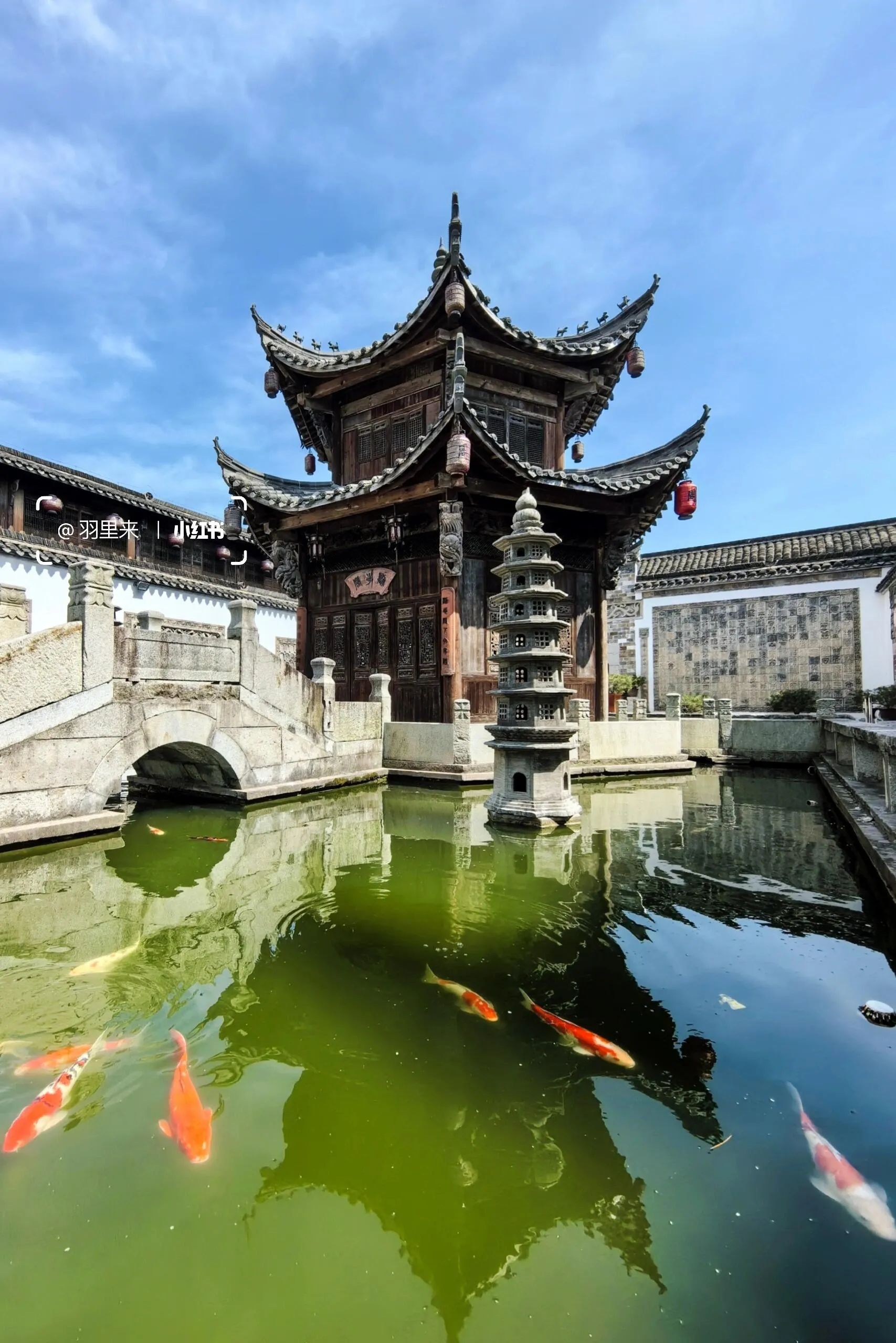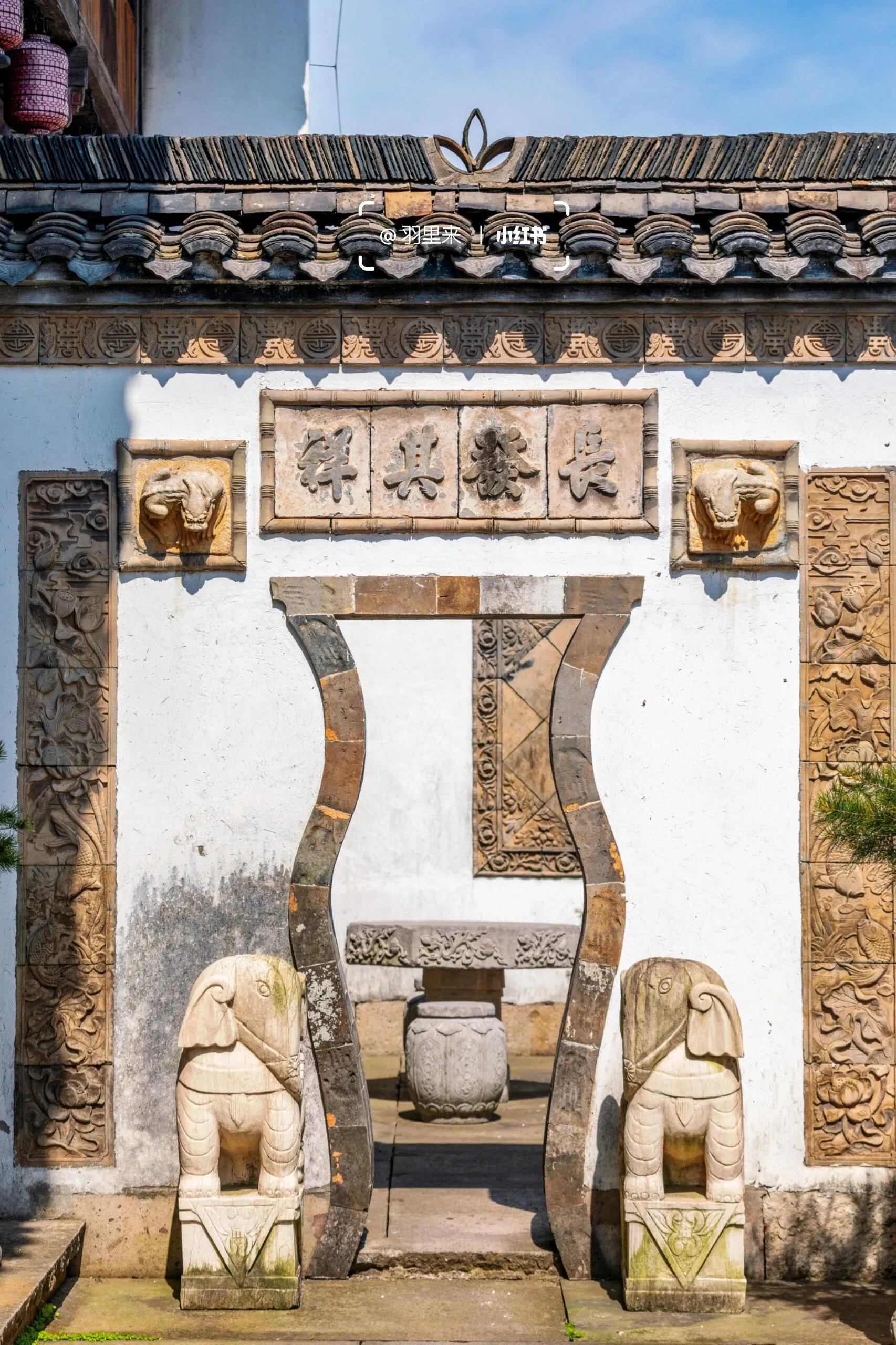 我最喜欢的是周家大院。能在南京一览“青砖小瓦马头墙,回廊挂落花格窗”的徽派古建之美,真的让人欣喜若狂。这些建筑是从皖南及皖赣边界整体搬迁而来,由上百名工匠按原样异地复建的。这里非常适合拍摄汉服人像,而且因为游客稀少,可以尽情拍摄。