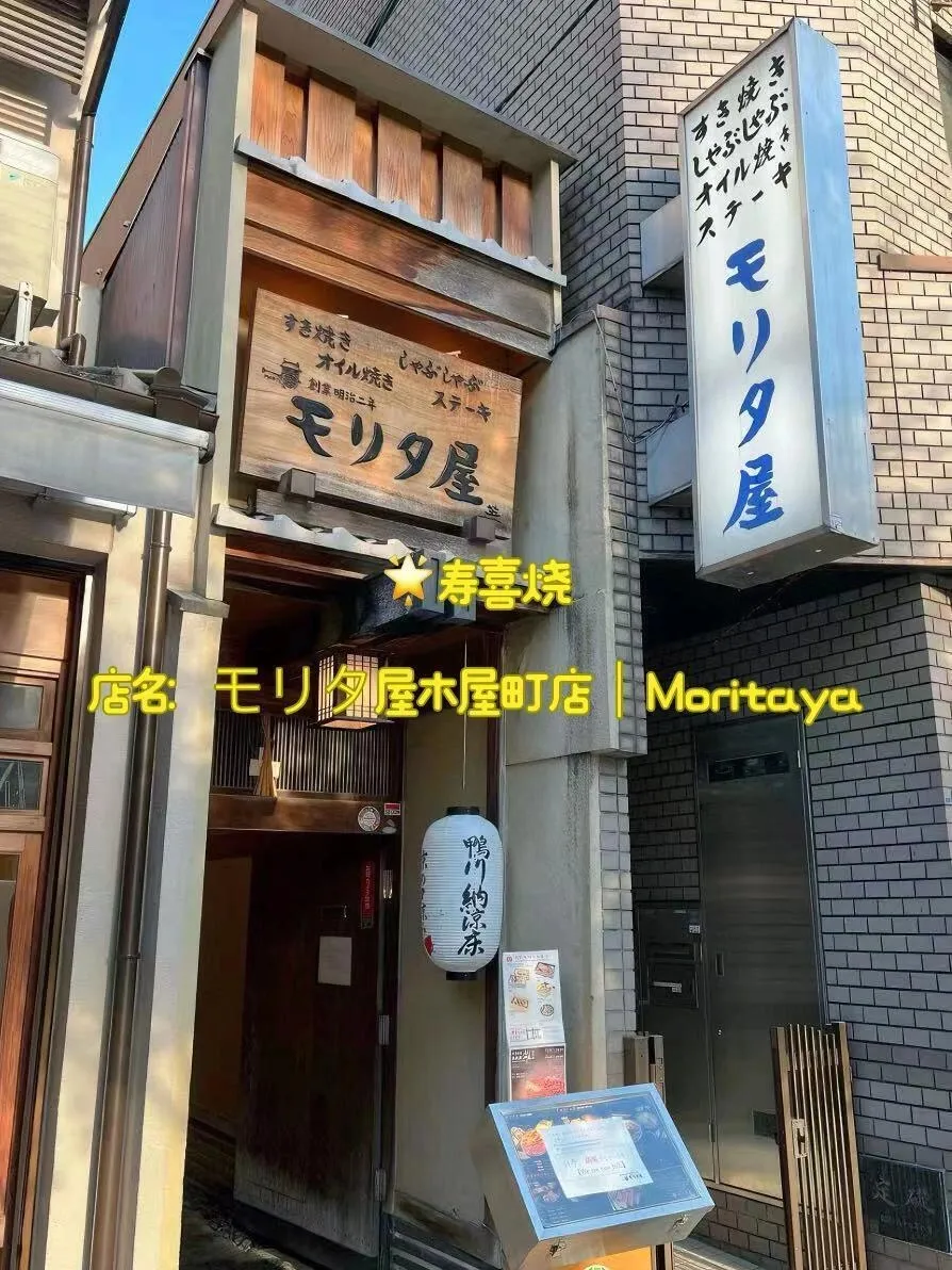 另一家值得推荐的寿喜烧店是モリタ屋木屋町店|Moritaya,地址在京都市中京区木屋町三条大阪町531。这家店在京都可以说是无人不知,他们的和牛寿喜锅尤其出名。