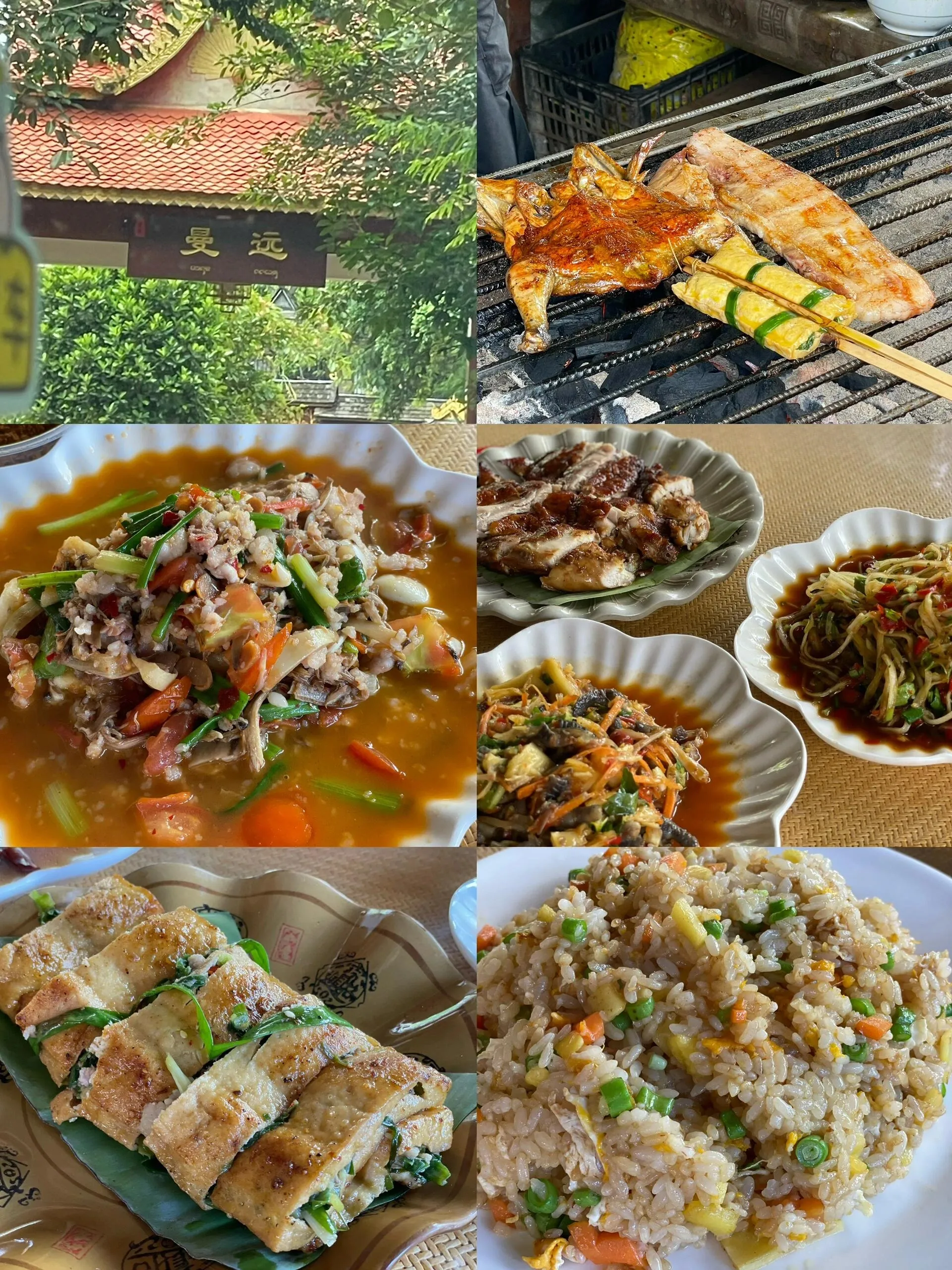西双版纳曼远村进村第一家:意外的惊喜!舂鸡脚、烤鸡、烤五花、烤豆腐都十分美味。菠萝炒饭稍显一般。