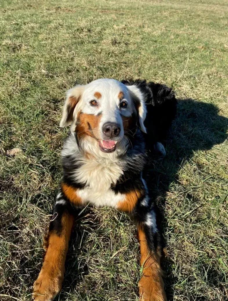 Fanny原本是一只标准的伯恩山黑白棕配色的狗狗。