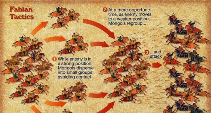 这种“迂回包抄”的战术,其要点在于首先把薄弱的腹部暴露给敌人,让敌人误以为蒙古军队不堪一击,贸然进攻。