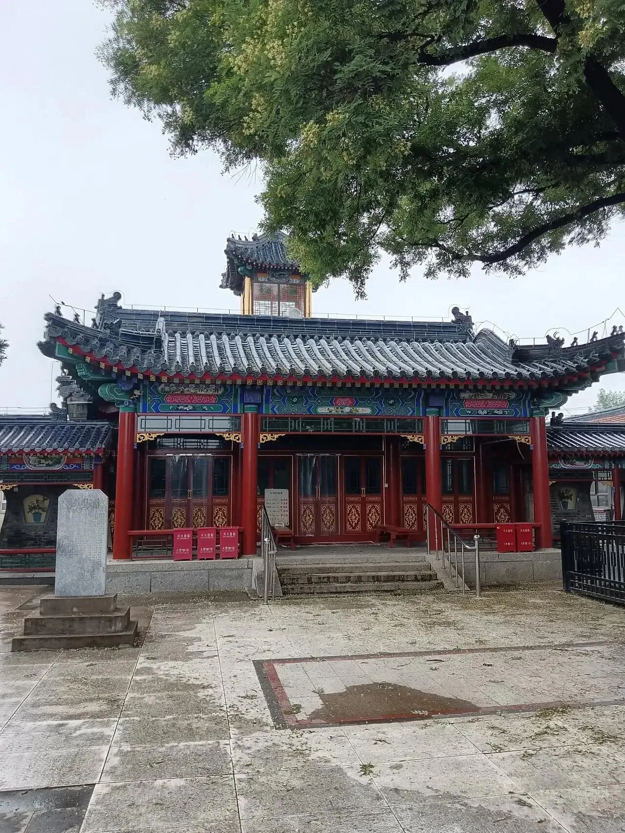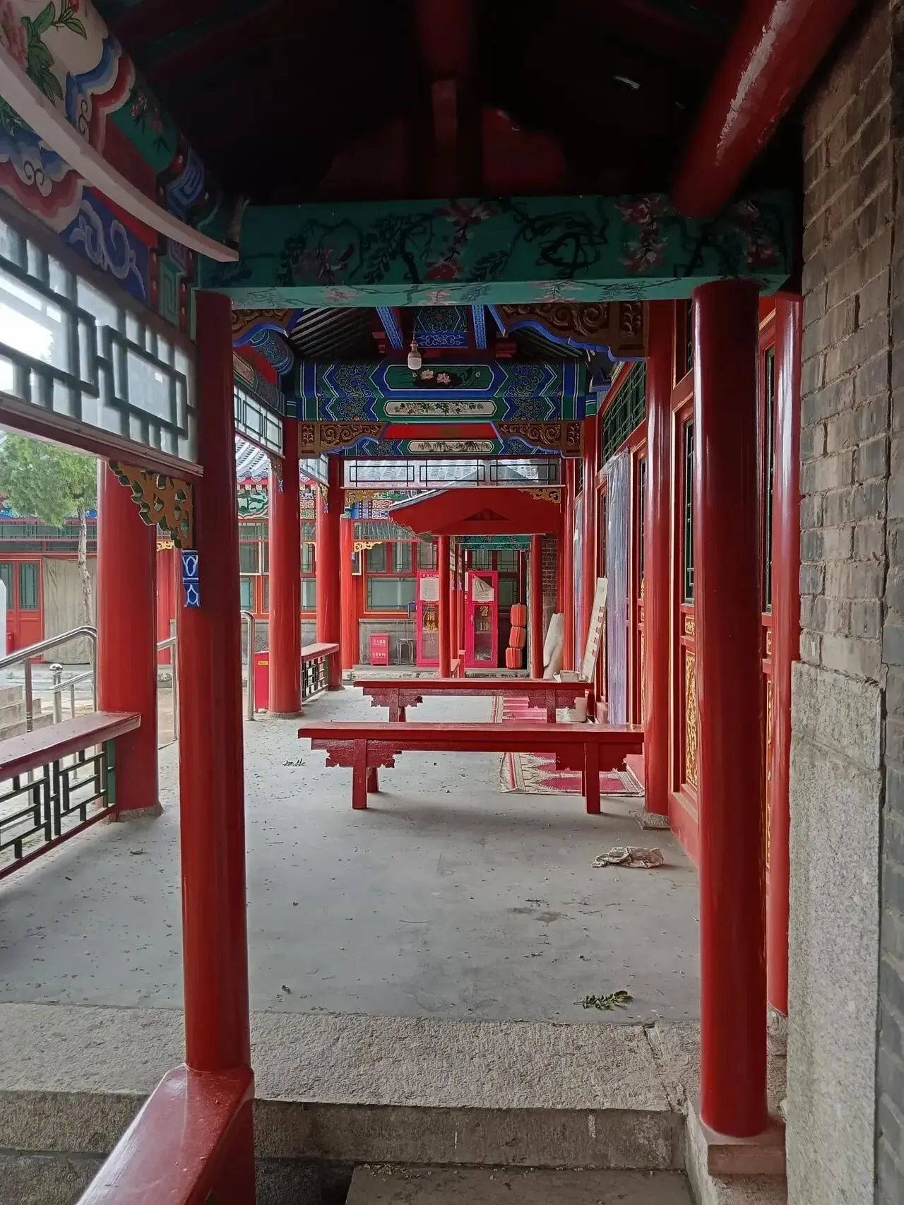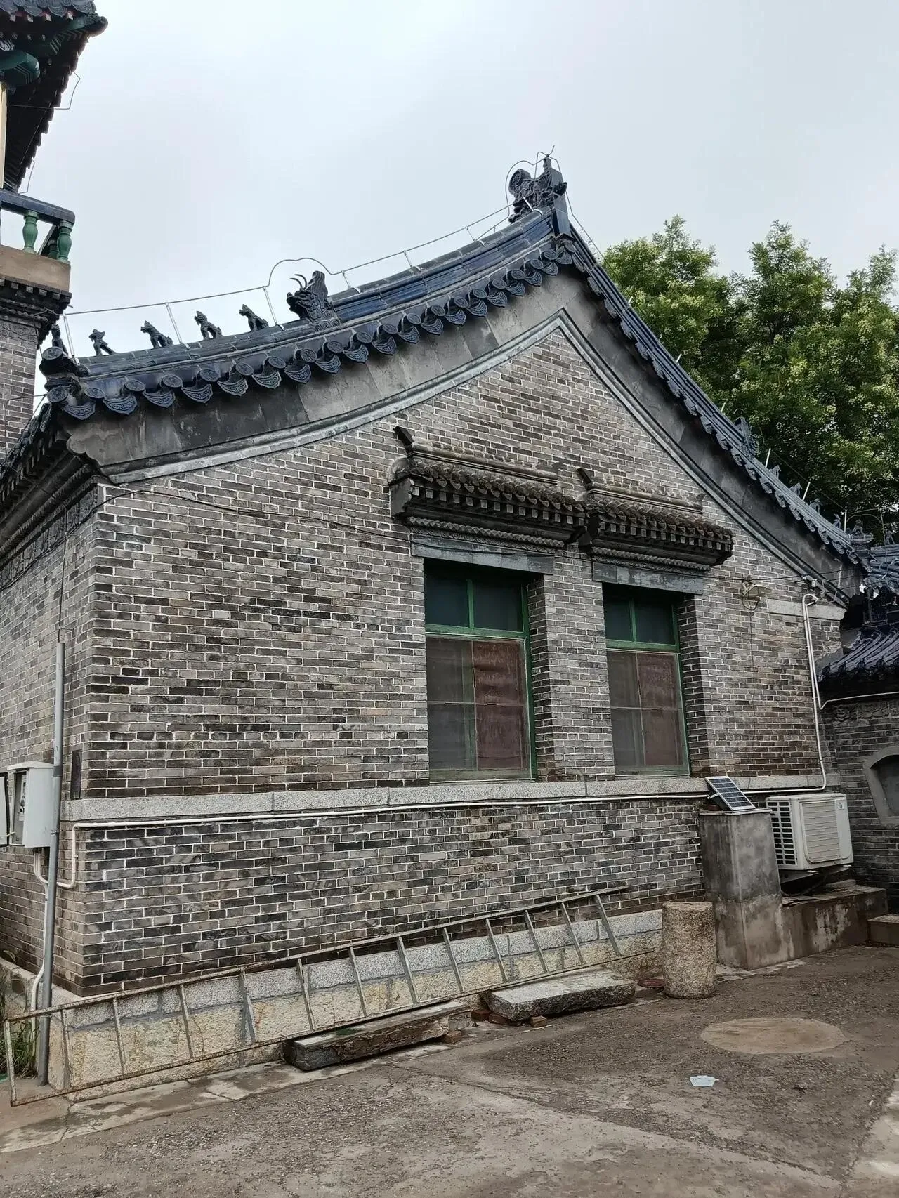 穿过二进院的大门,你会看到一座砖砌仿木结构的建筑, 屋顶为调大脊式样 。院内还有一座卷棚顶的影壁,庄严肃穆。礼拜殿面阔三间,前部为敞厅设计,宽敞明亮。