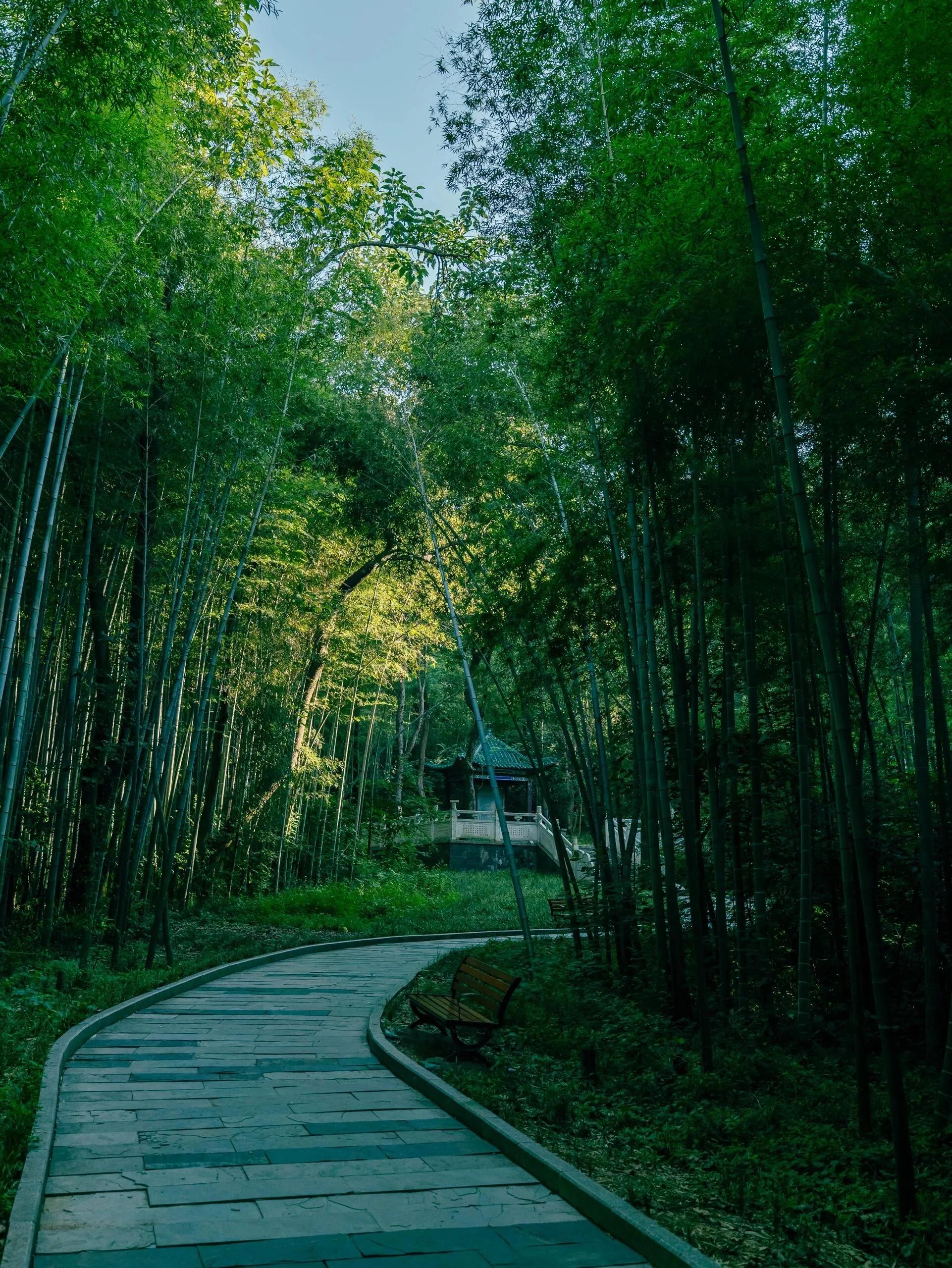 公园最令人惊喜的是山脚下隐藏着一片大竹海 ,在武汉这样的大城市中实属罕见。微风拂过,竹叶沙沙作响,置身其中,仿佛进入了一个夏日清凉的秘境,氛围感十足。