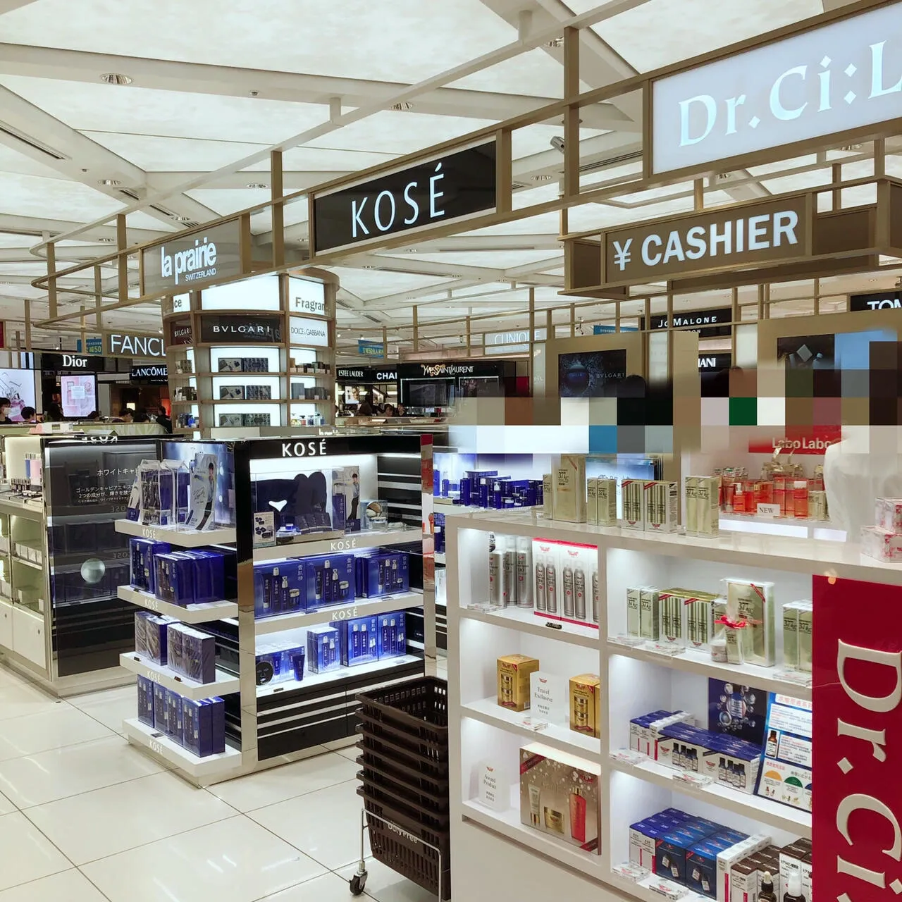 化妆品类品牌众多,包括安娜苏、肌肤之钥、娇韵诗、倩碧、香奈儿、迪奥、黛珂、城野医生、雅思兰黛、芳珂、纪梵希、娇兰、赫莲娜、茵芙莎、JILL STUART、科颜氏、高丝、嘉娜宝、海蓝之谜、兰蔻、莱珀妮、欧舒丹、魅可、PAUL&JOE、宝丽、RMK、Refa/MDNA(美容仪/护肤)、SK-II、资生堂、植村秀、SUQQU、索菲娜、THE GINZA、THREE、汤姆福特和圣罗兰等。