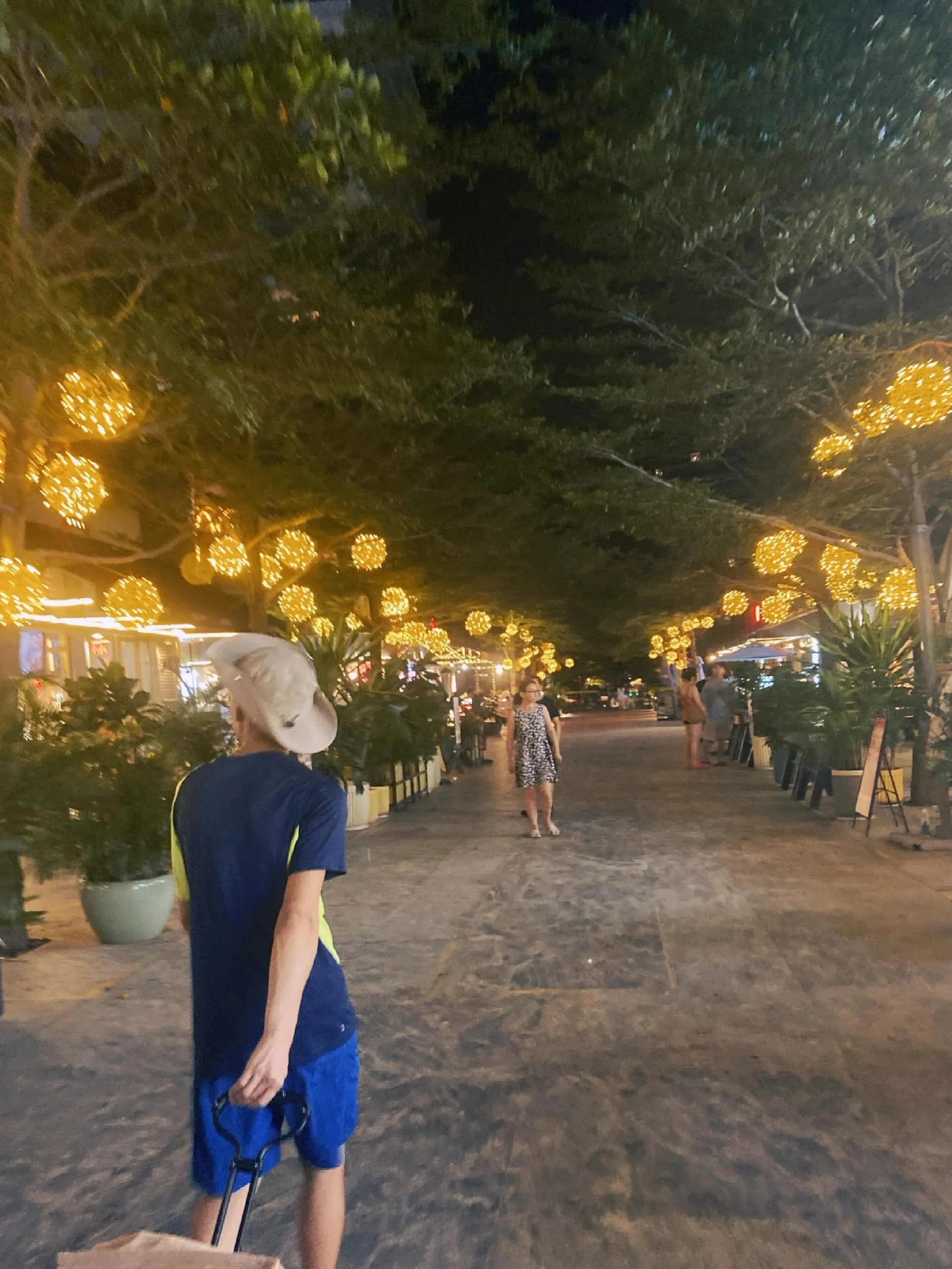 美食方面,可以去沙滩旁边的华润商业街。 这里有很多小吃和餐厅可供选择。晚上还可以逛逛晚市,感受当地的生活氛围。