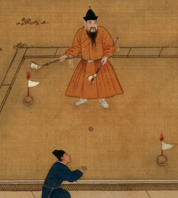 这项运动古代叫捶丸,起源于宋代,元代时上流社会非常喜爱,明代变得流行。