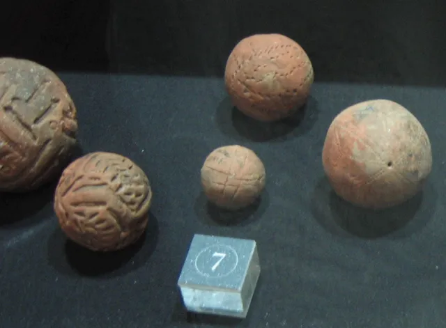 这是根据出土球杆制作的复制品,原件因为材质的原因已经破败不堪,只剩下石质材料保存完好。