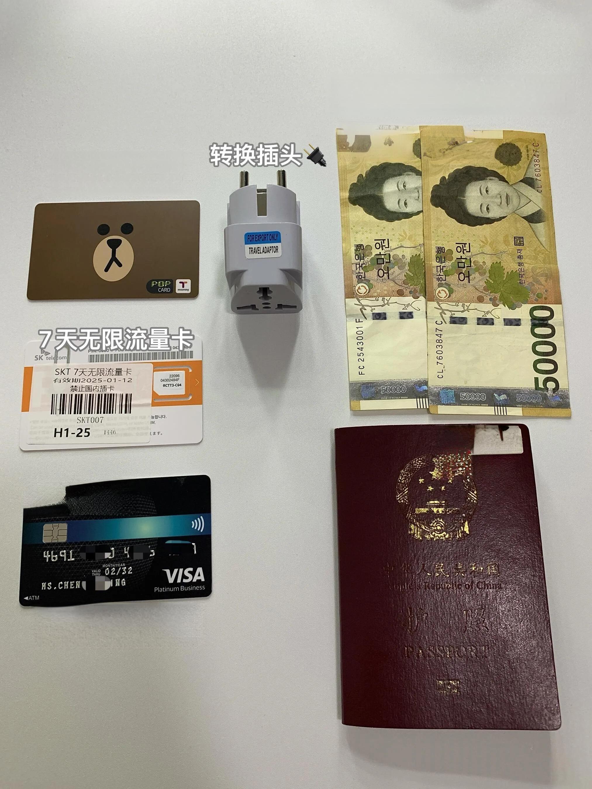 VISA信用卡:在韩国,许多商户不支持国内银联卡、微信或支付宝支付。 VISA信用卡使用范围广,可在地铁、便利店等多数可刷卡的场所使用,非常重要。