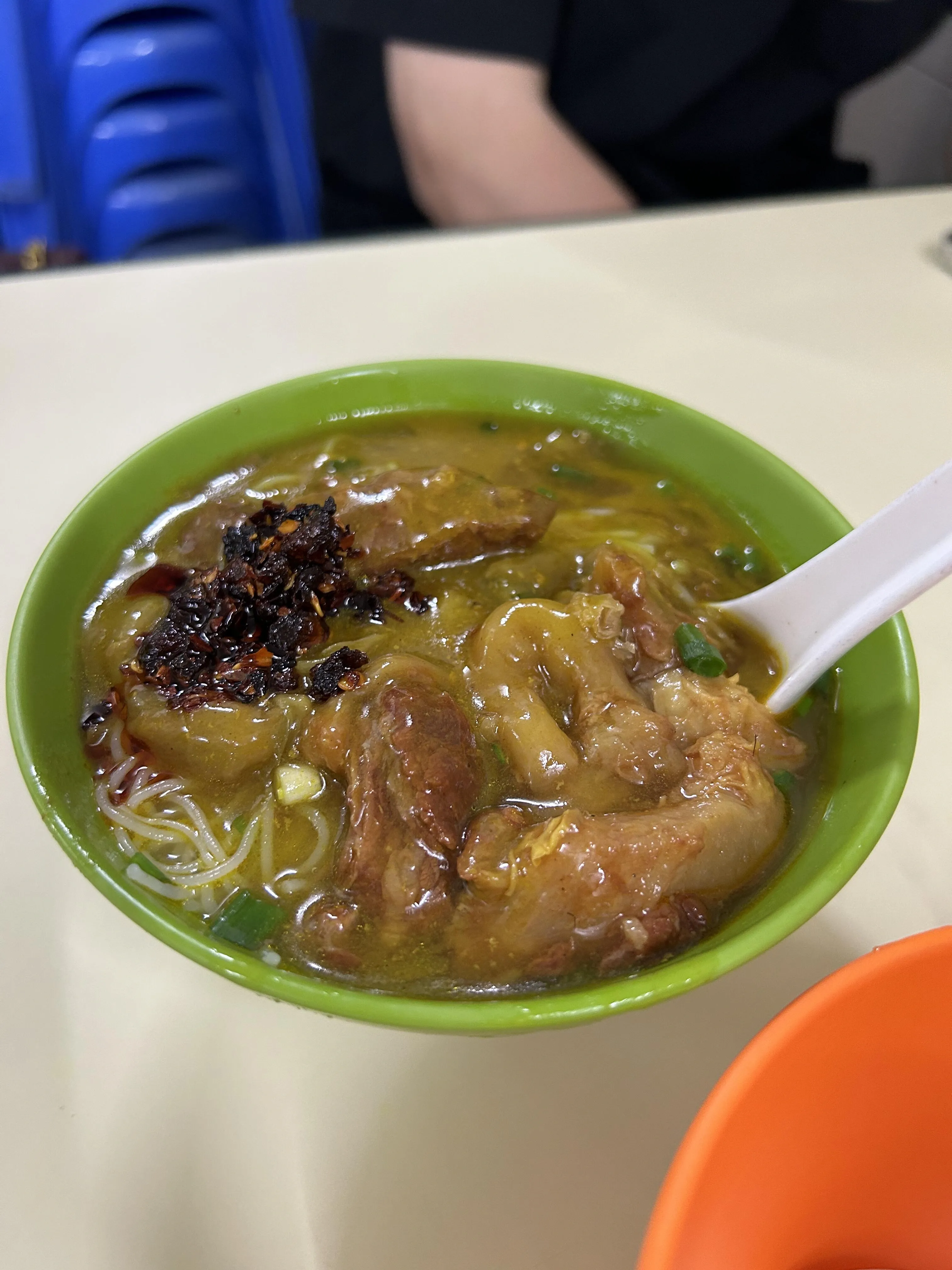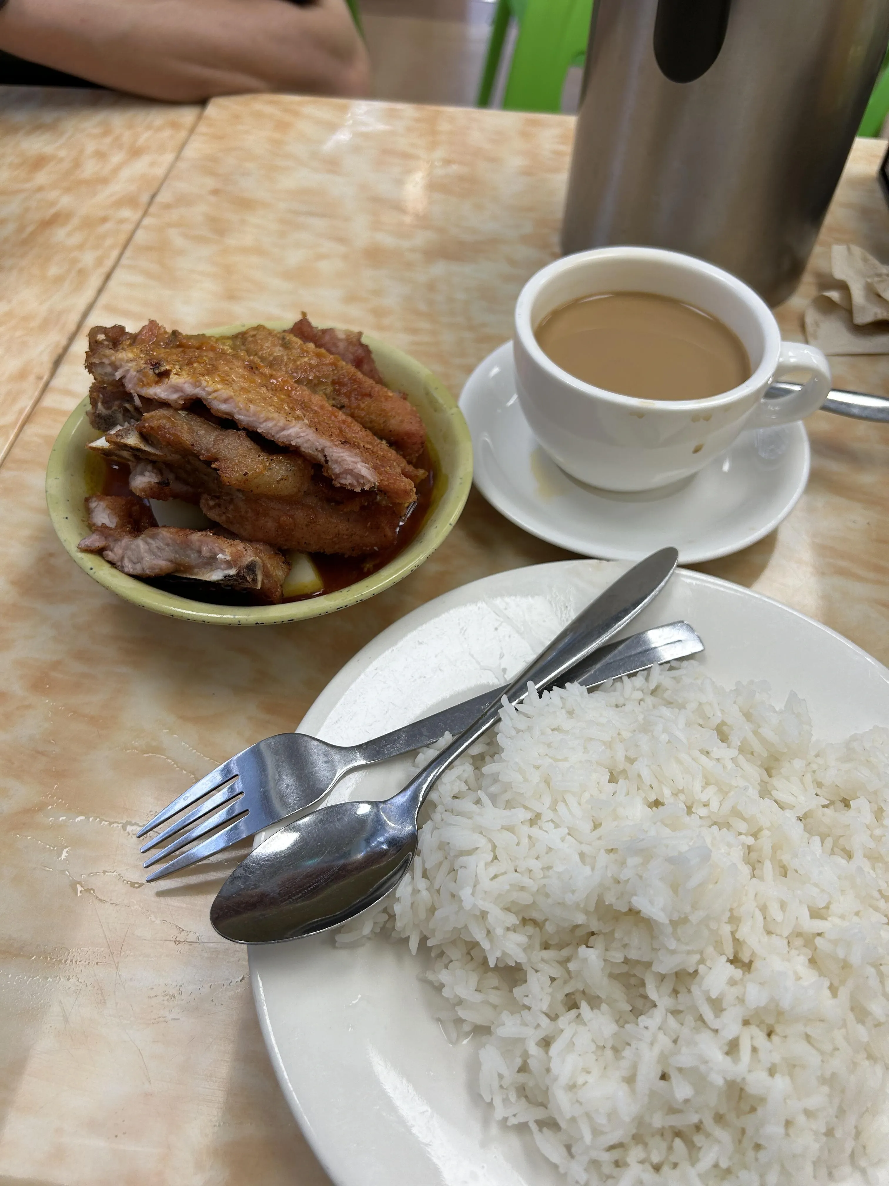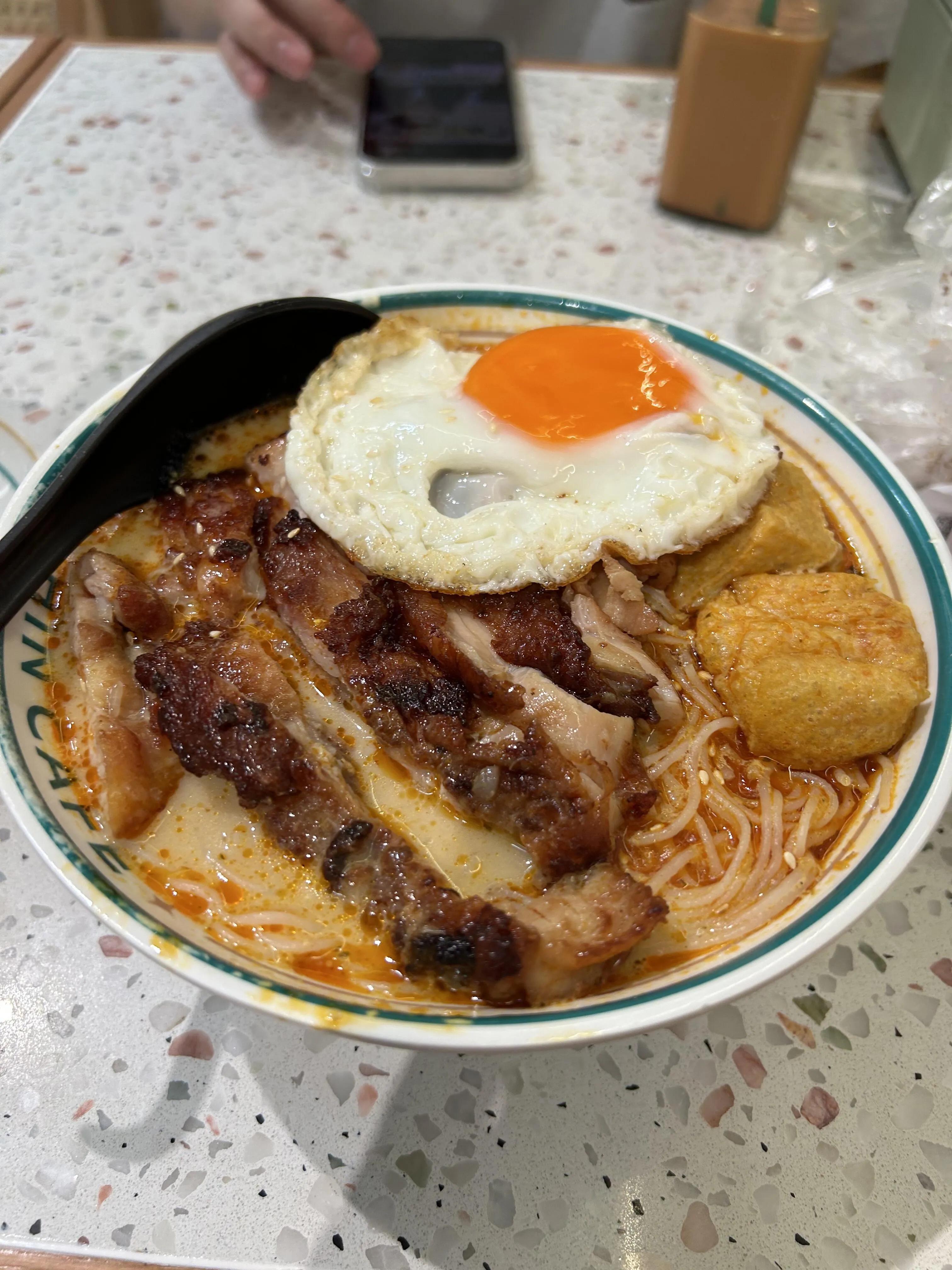 新宝咖啡面食的咖喱猪扒土豆饭和咖喱鸡扒土豆饭分量惊人 ,味道出众。牛筋面也备受好评。位置便利,靠近关闸。