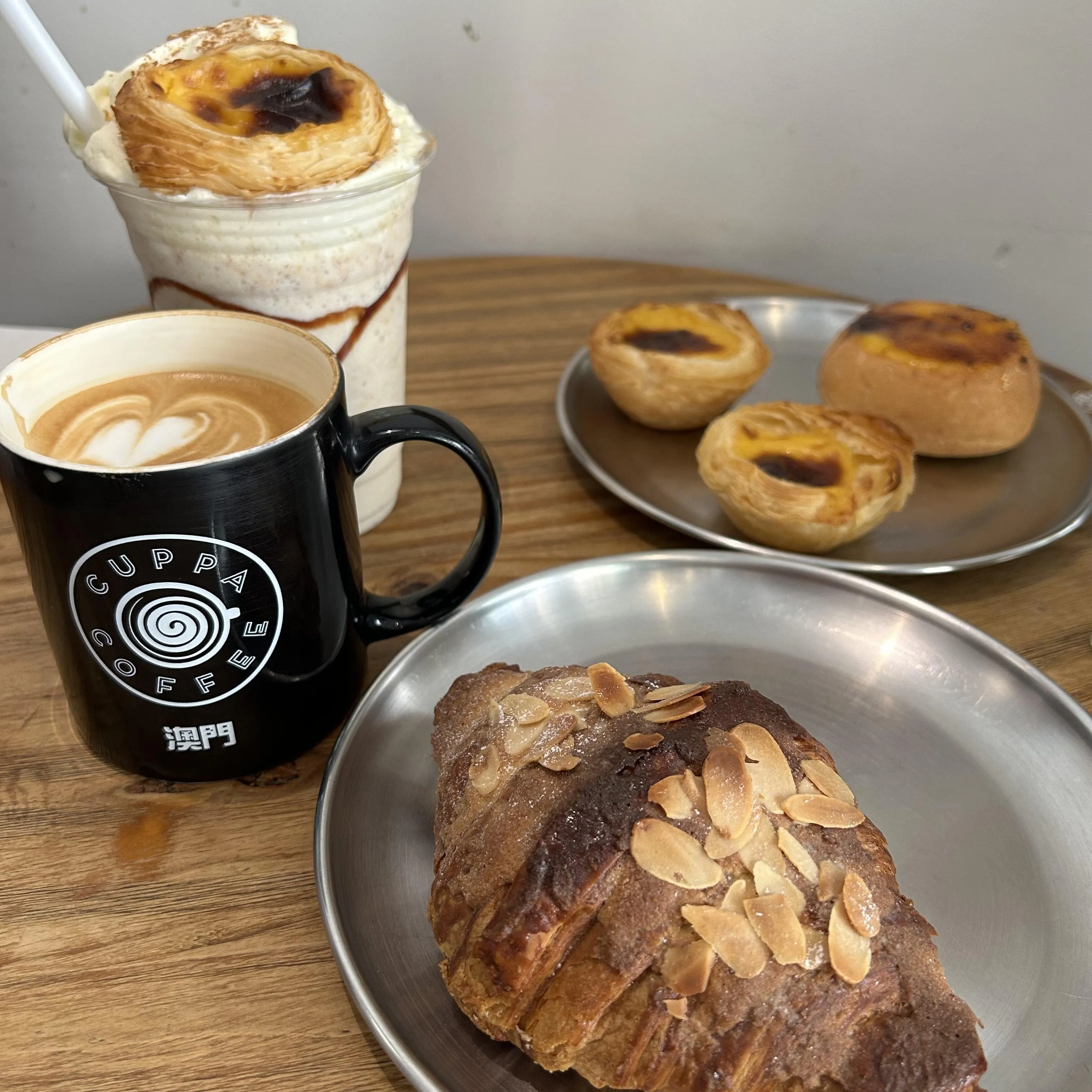 Cuppacoffe的拿铁香气四溢 ,值得一试。葡挞奶昔造型独特,但偏甜。店员热情周到,提醒使用代金券可以获得优惠。