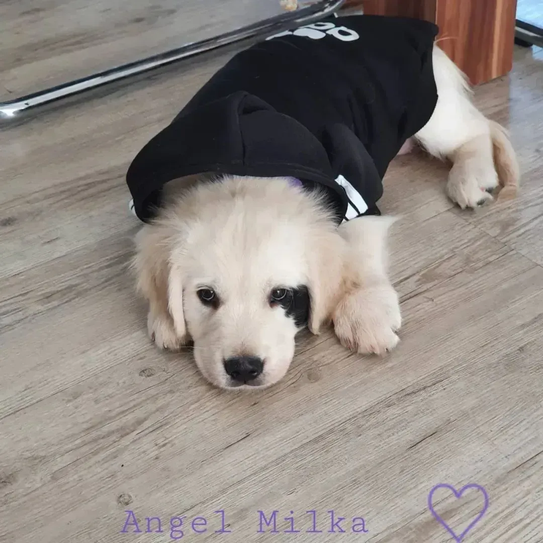 而且这标记一出生就有,在整窝小金毛中它就是那颗闪亮的星,真的太炫酷了!