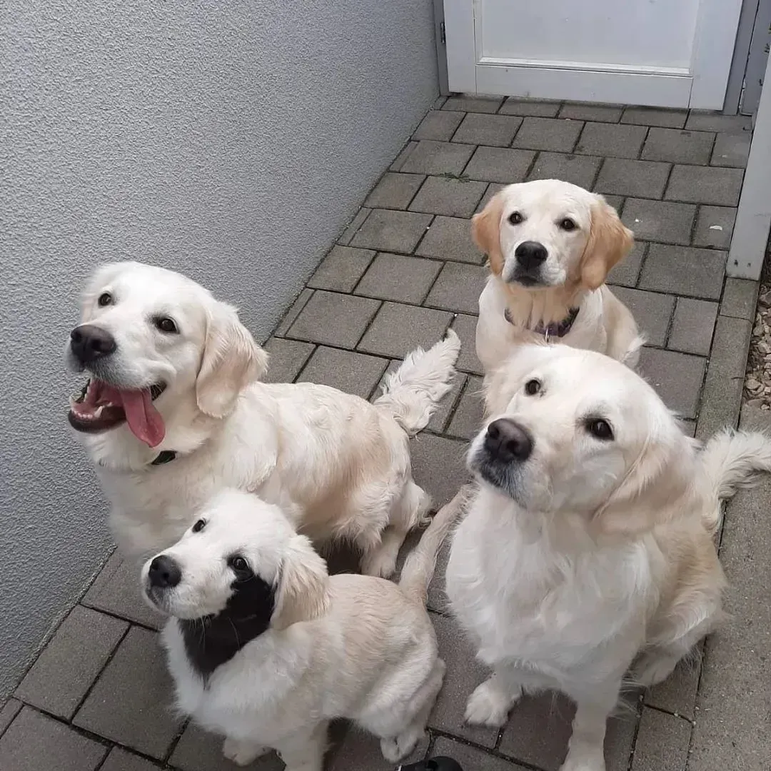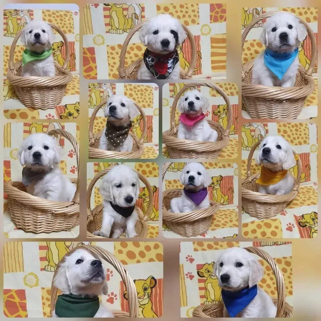 别的小狗需要通过围巾的颜色来区别,而这只小金毛完全不需要,简直一眼就能认出!