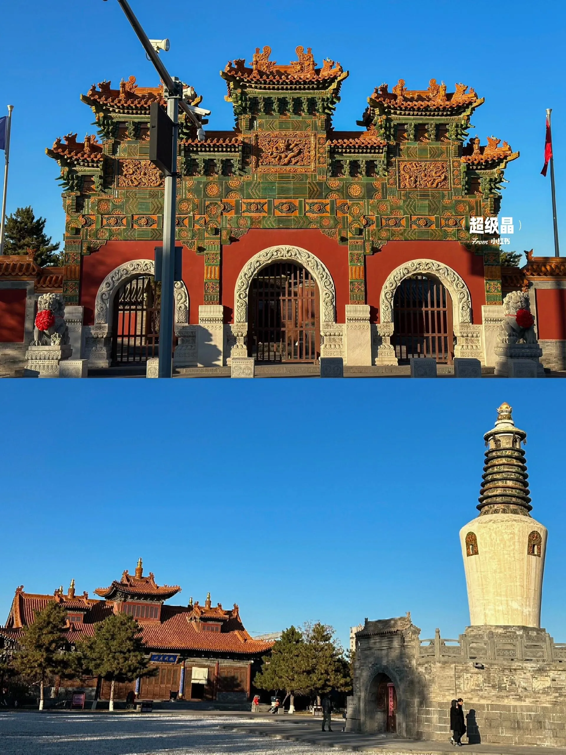 法华寺:唯一一座覆钵式琉璃喇嘛塔,人少安静,毗卢殿壁画与永安寺相似。