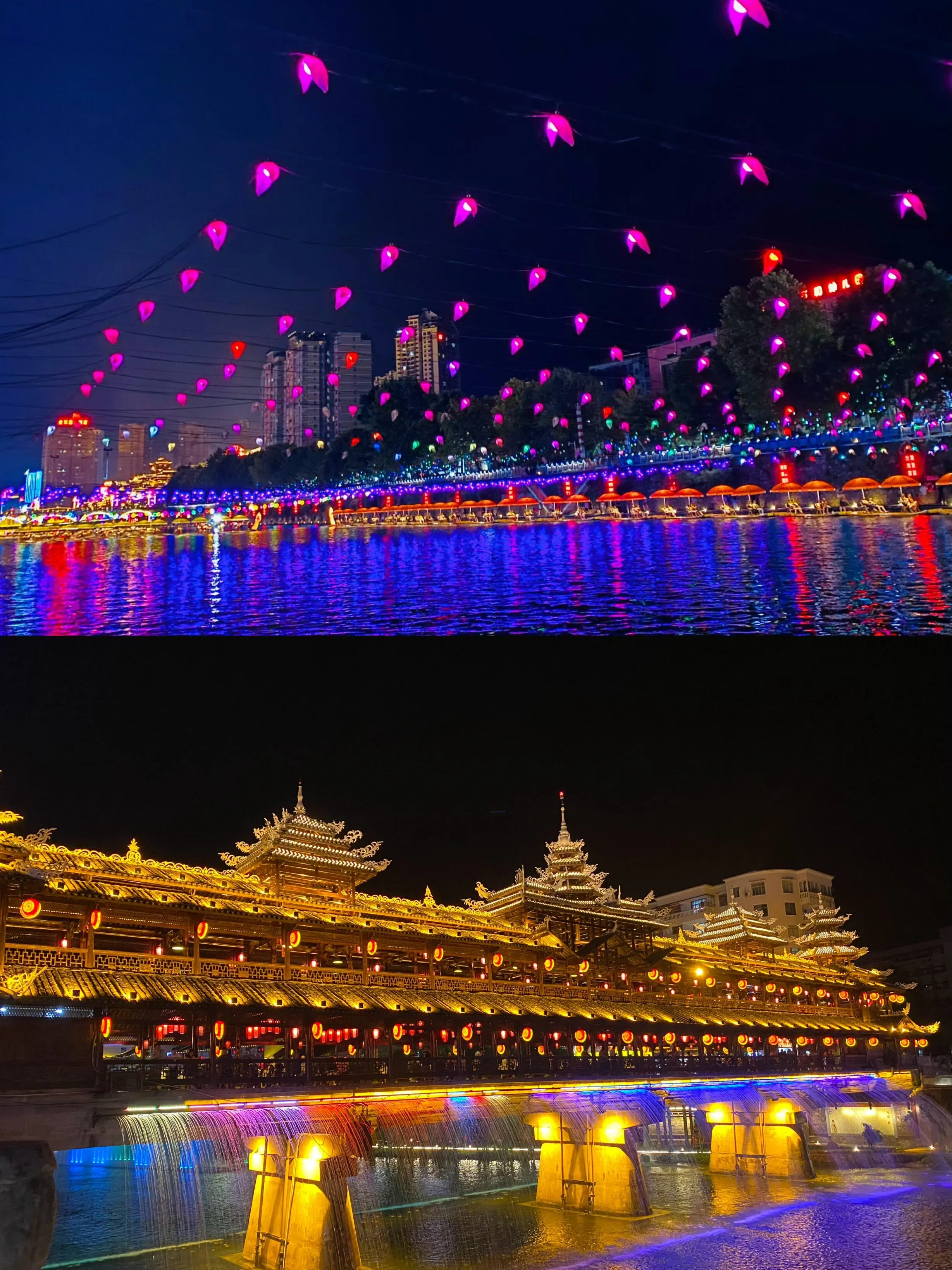 宣恩夜景:4A级景区,是唯一一个以城市为核心区域的4A景区,沿贡水河两岸分布。夜晚可以欣赏莲花坝带状公园、老院子、民族风情街、文澜桥、贡水河等美景。