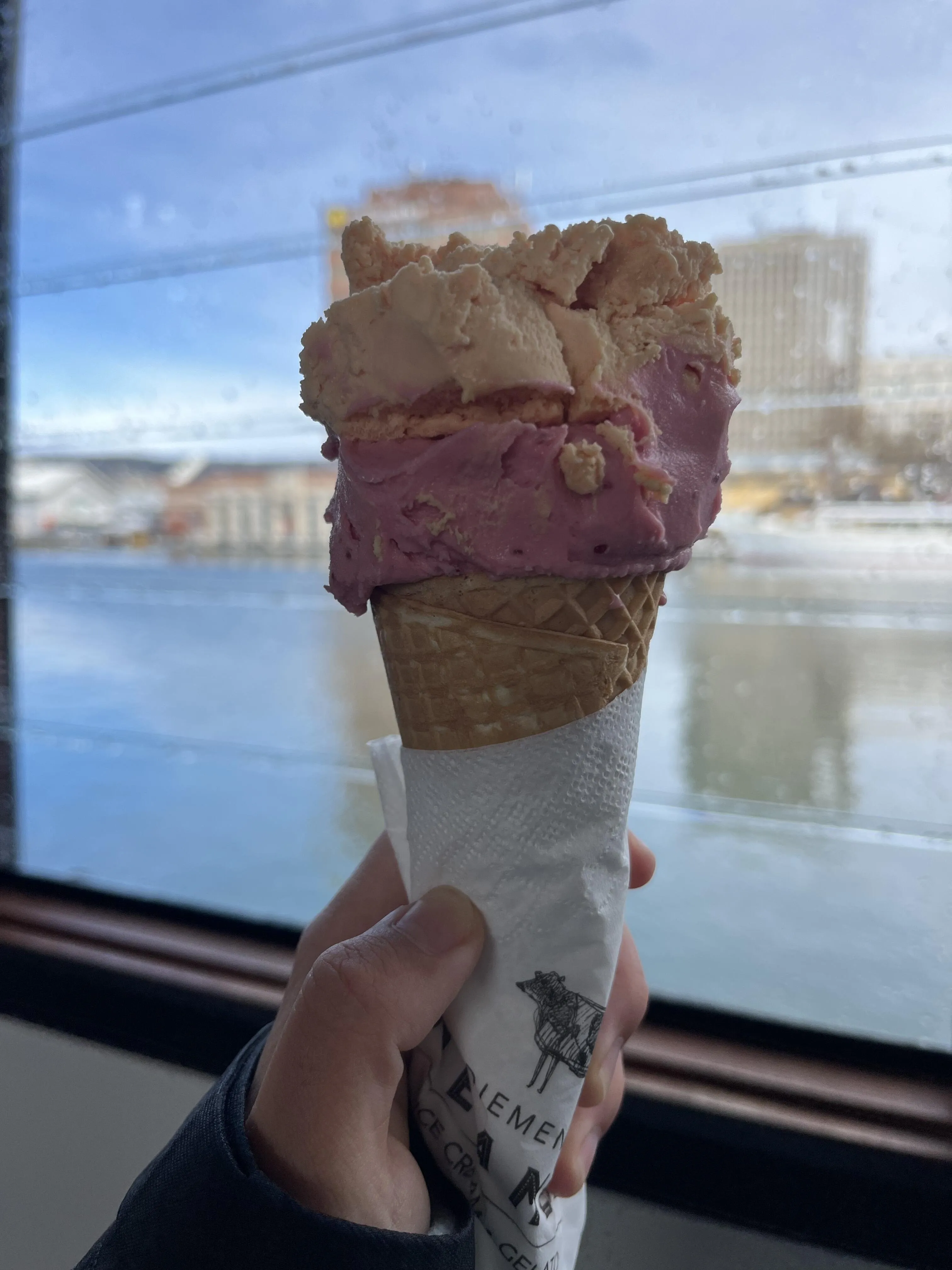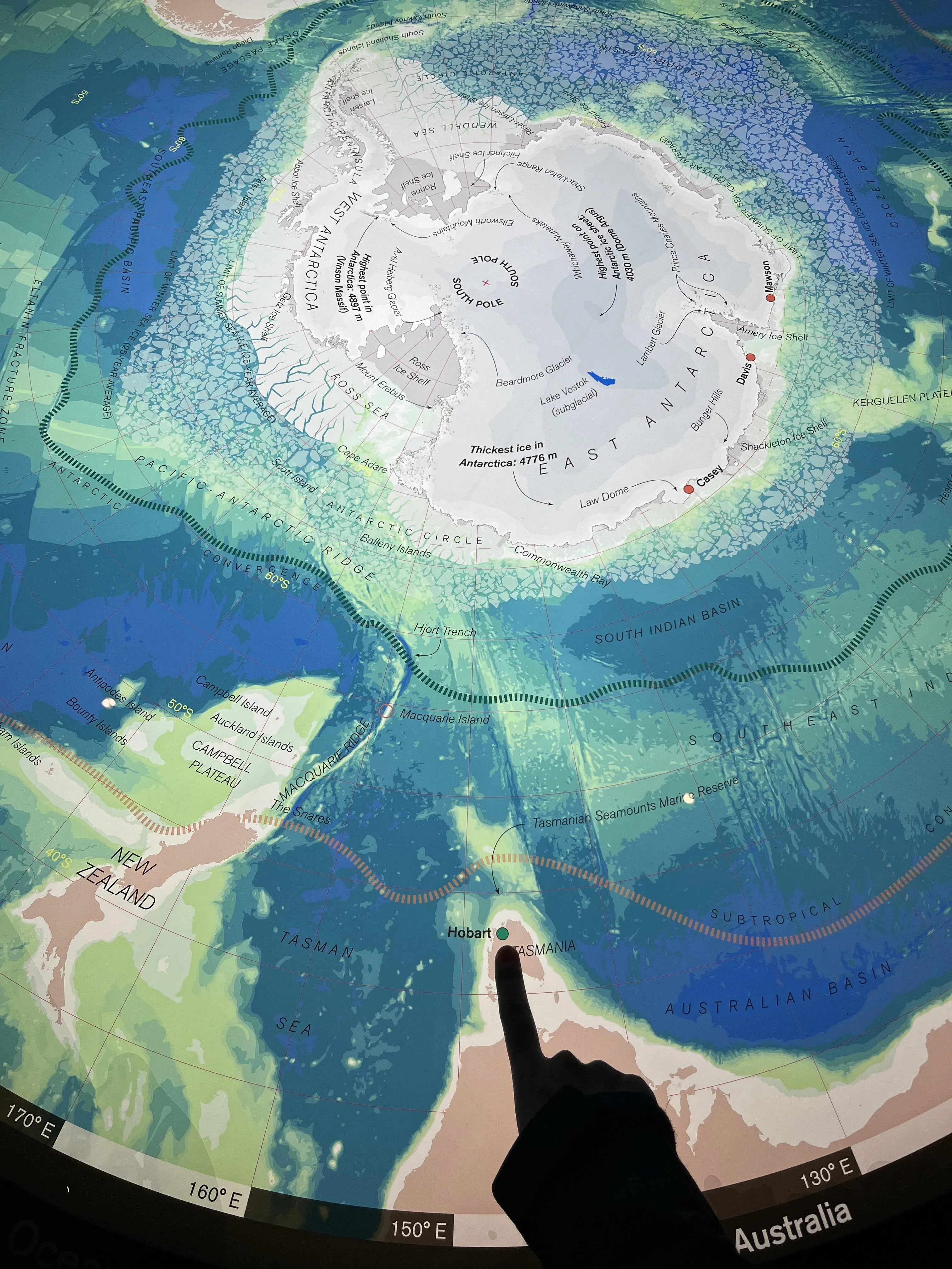 第一天的行程从塔斯马尼亚博物馆和美术馆开始,馆内有专门介绍霍巴特与南极联系的展区,颇为有趣。随后在码头品尝了当地知名的Van Diemens Land Creamery冰淇淋,6.5澳元可选两种口味。之后沿海边漫步至塔斯曼大桥,但因天气恶劣而返回市区。