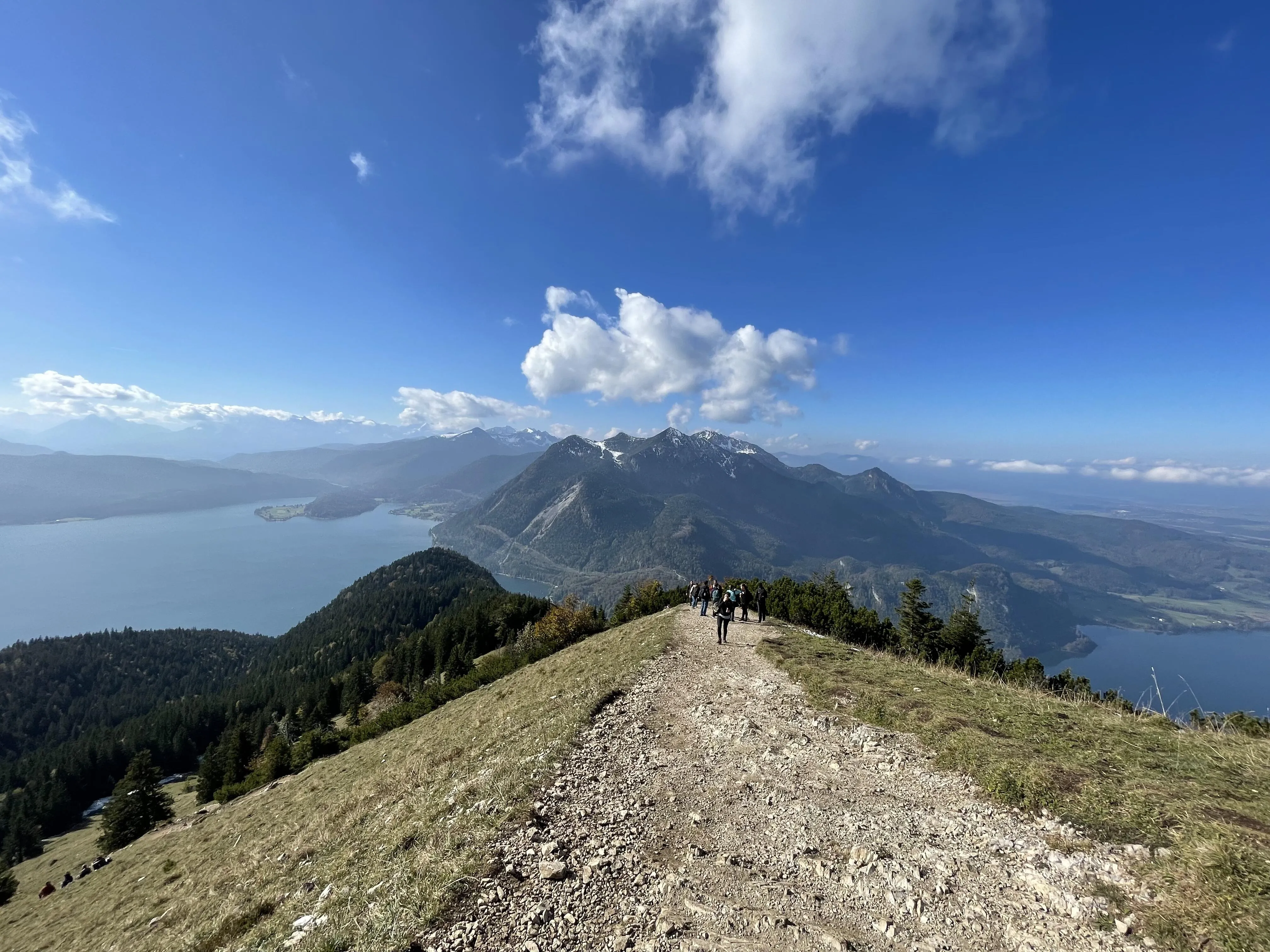 ,但风景绝对也不落人下。同样俯瞰着两个高山湖泊,Jochberg不那么陡峭,却有着极佳的视野,徒步进阶者绝配。难度和景色都很高。从慕尼黑乘火车到Kochel,往返约2小时。