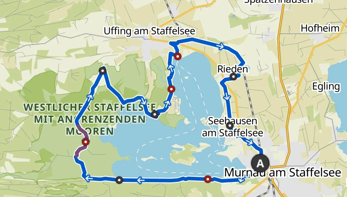 ,有很多成对出现的湖泊,两侧是绝美的山脊线。Murnau小镇里有大块的草场,也是许多表现主义画家曾经的栖居之处。在徒步线上有许多指示牌,可以对比画中的风景和附近的村庄。难度低,景色很美。从慕尼黑乘火车往返约2小时。