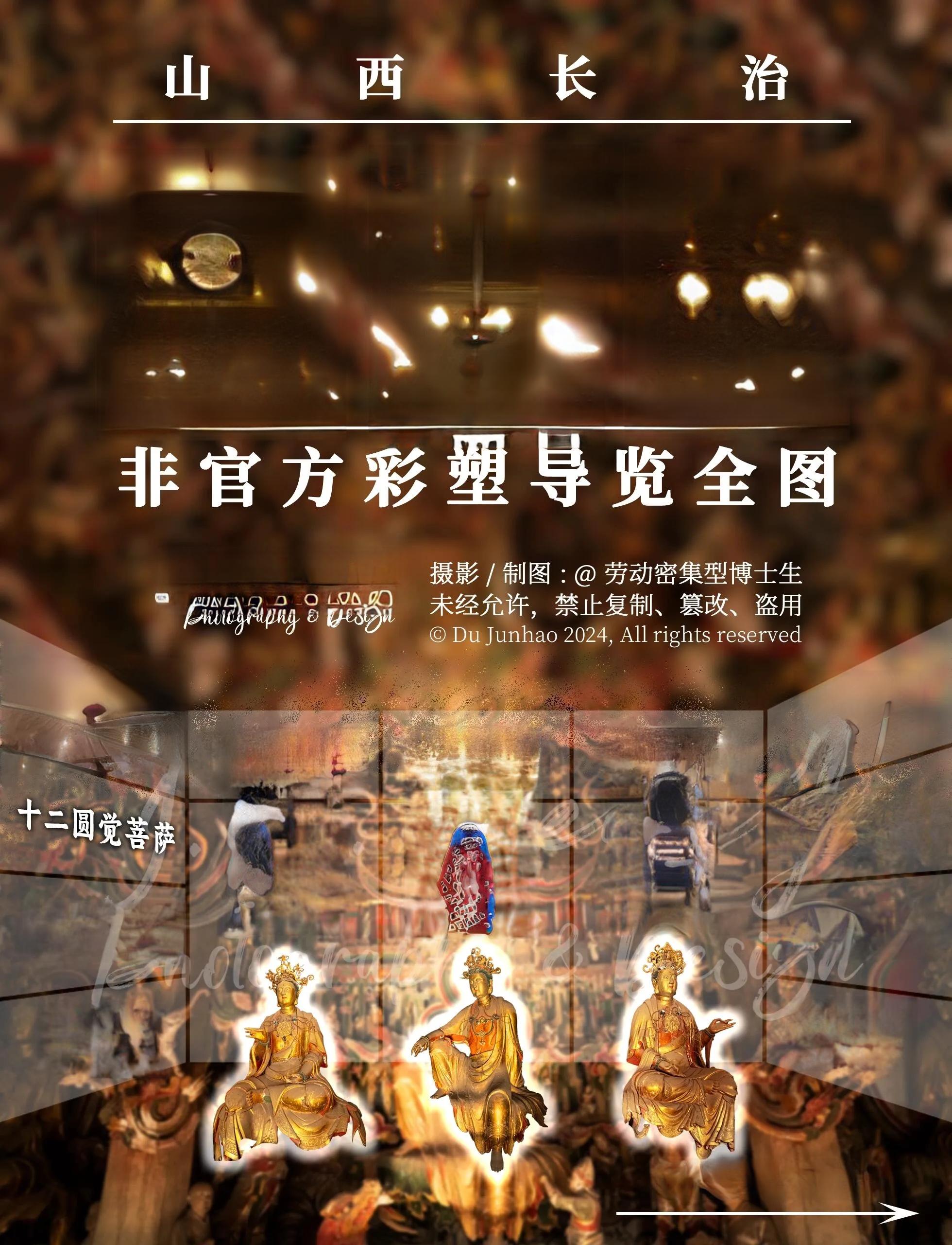 正是这次经历,促使我制作了《长治观音堂非官方彩塑导览全图》。回到北京后,我前往北大考古文博学院图书馆,借阅了长治市博物馆编纂的 《长治观音堂明代彩塑》和《观音堂——山西长治明代彩塑珍品》 两本馆藏书籍,并参考了相关期刊文章和研究生论文,最终完成了这份导览图。