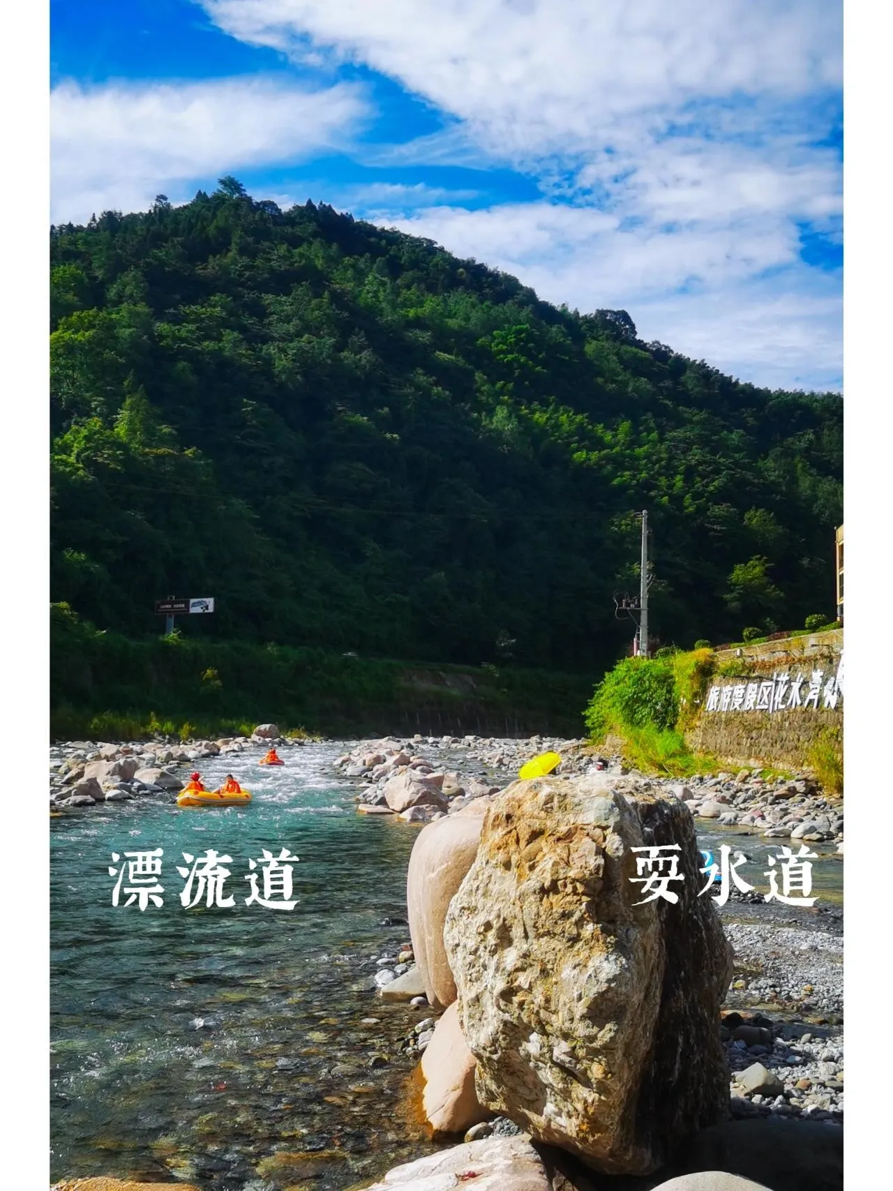 还在烦恼周末去哪里耍水?还在想怎么带娃消暑?不妨去大邑花水湾试试!位于西岭雪山山脚下的花水湾,最近河道经过重新平整,分成了漂流河道和平缓的耍水河道。这里既能满足大小朋友安全耍水消暑的需求,又能体验捡化石的乐趣。